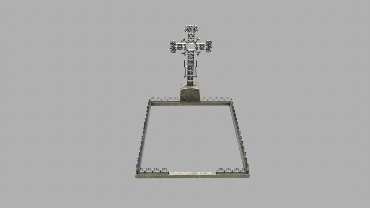 Fenced Grave With Massive Metal Cross
