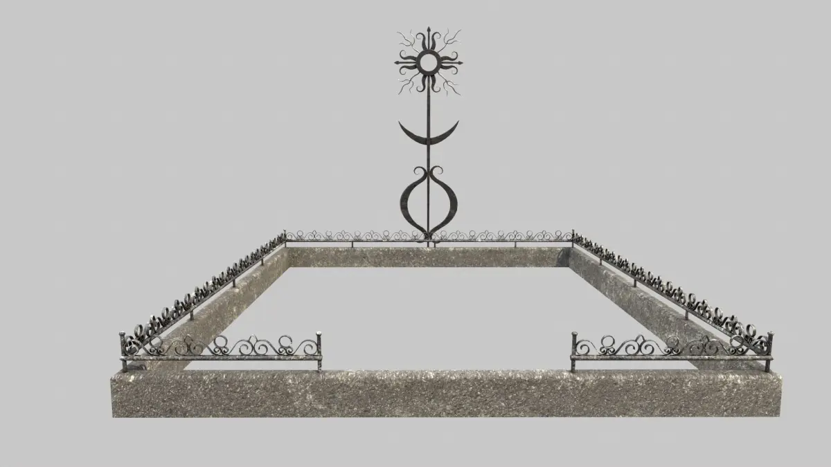 Fenced Grave With Unique Cross