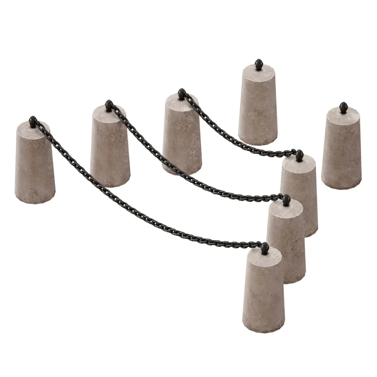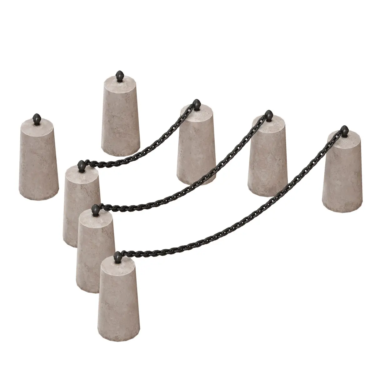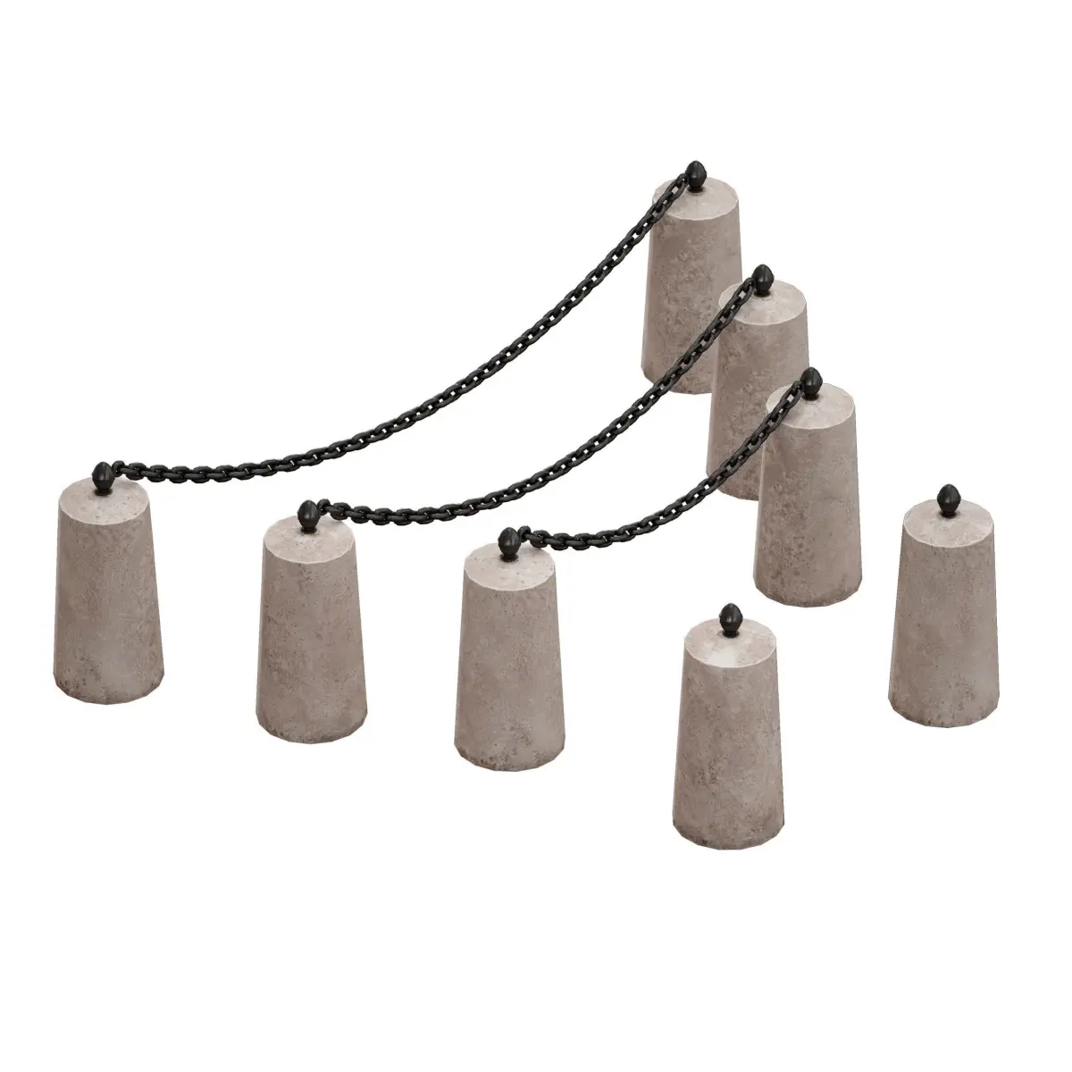 Fencing made of pillars made of concrete or granite with chains. The fence can be formed from free-standing poles, or poles connected by a chain.
