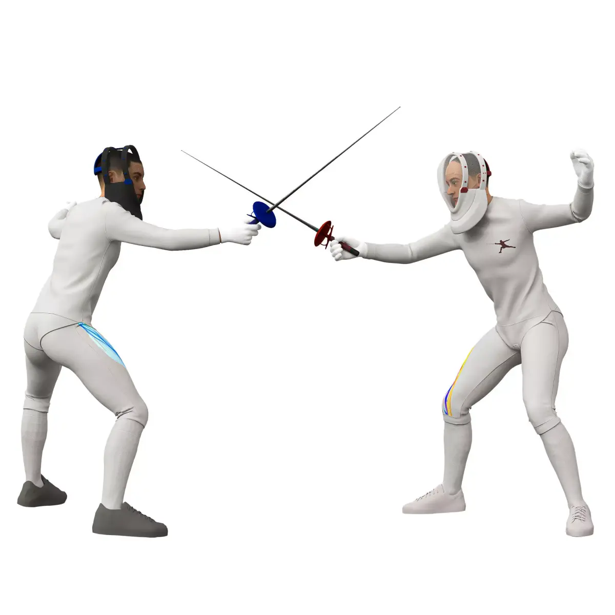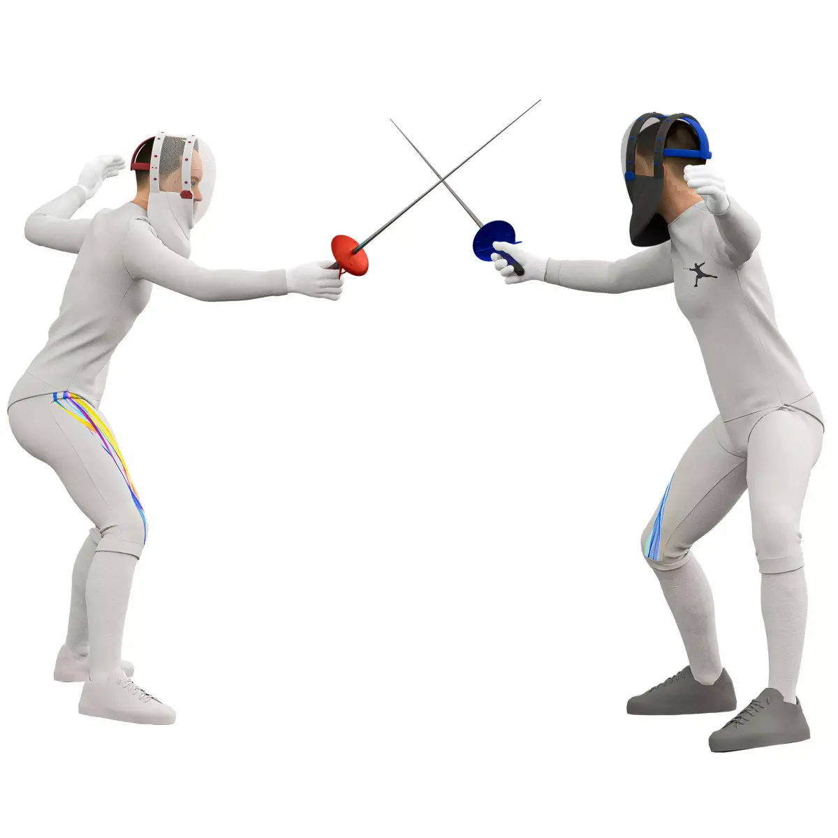Name: Fencing man in 2 posesType: modelFormat: 3Ds Max 2013Export: FBX, OBJRender: VRay (5.x), Corona (6)Polys: 301903Verts: 334740Matclasses: Multimaterial,VRayMtl,CoronaMtlUnits: CentimetersDimension: 198.5 x 251.18 x 177.05Date: 2025.12.22fencing poses, each model is dressed in realistic protective gear and equipped with fencing swords. Highlighted leg muscle groups emphasize physical exertion and movement, making this set ideal for educational media, sports animation, or virtual fashion. Fully compatible with Unreal Engine, Blender, Marvelous Designer, CLO Virtual Fashion, 3ds Max, and Maya.