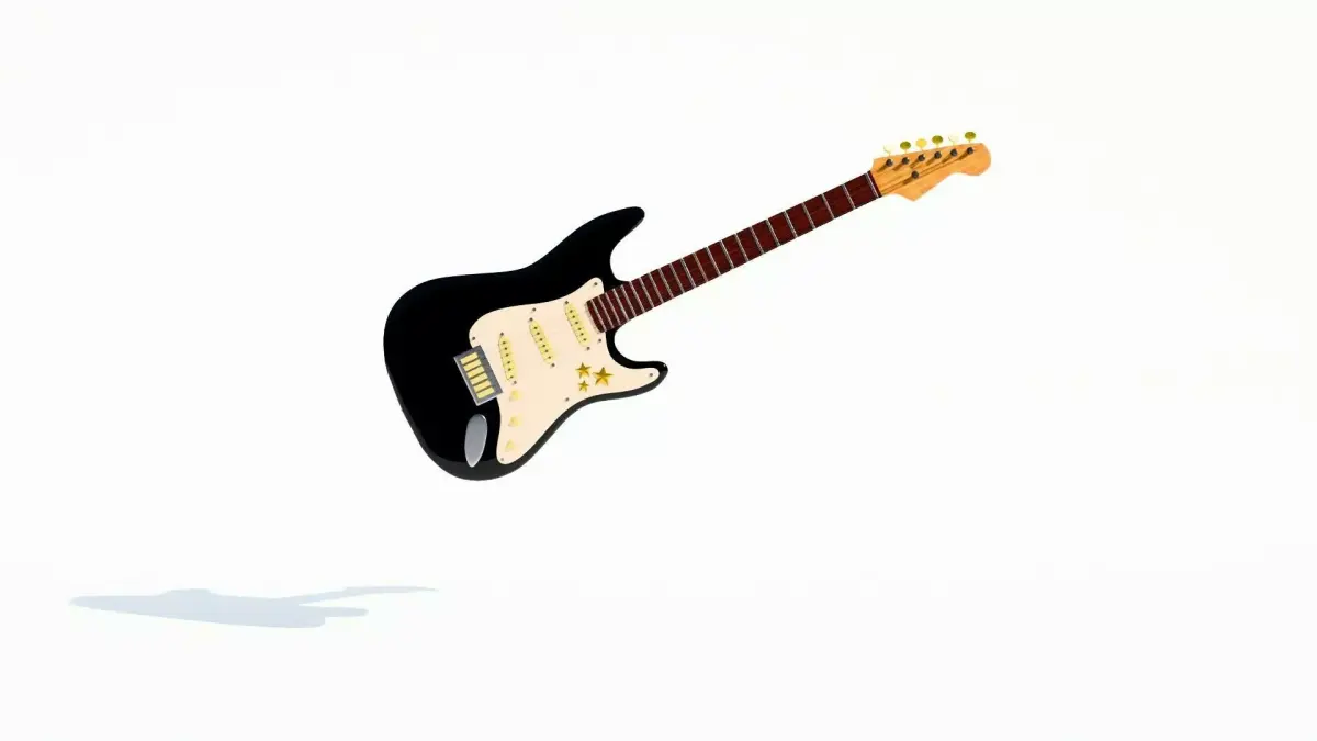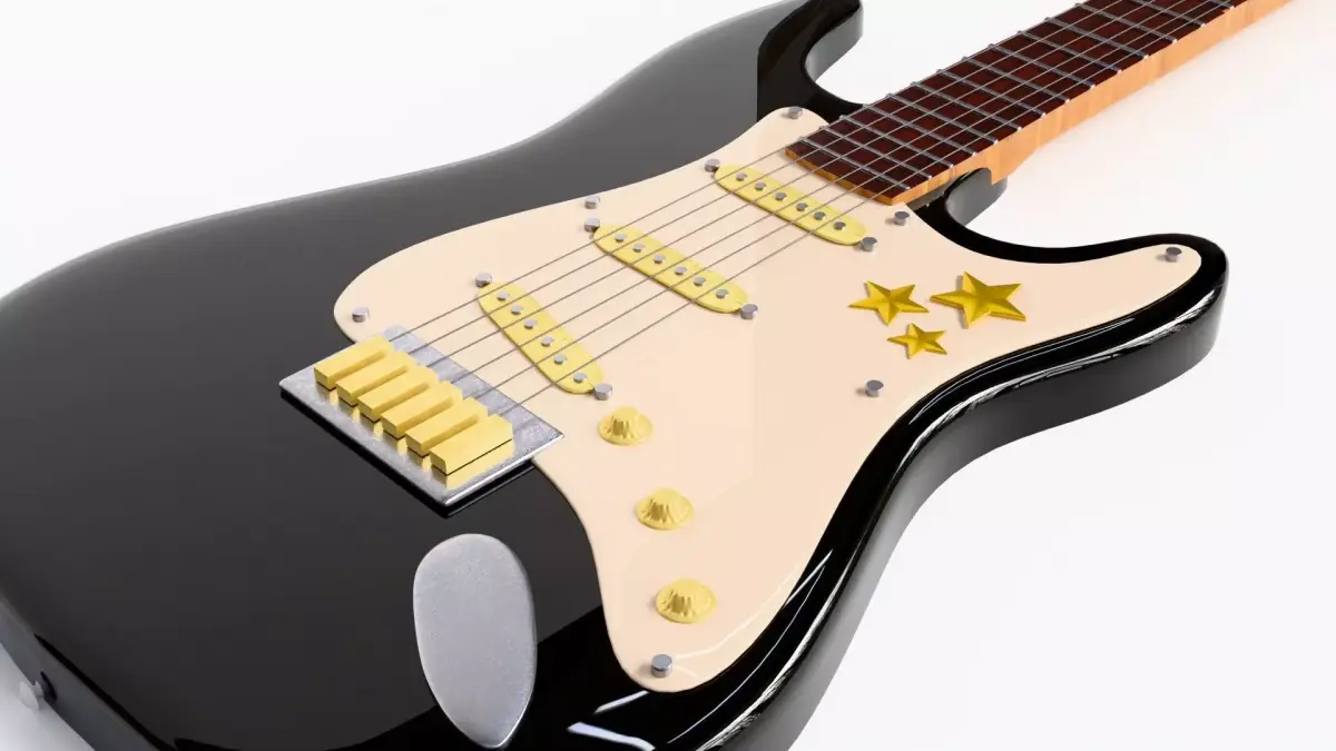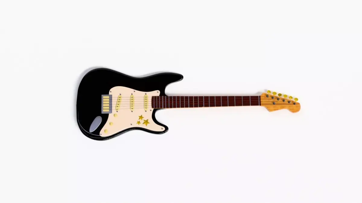 A high-quality 3D model of an electric guitar