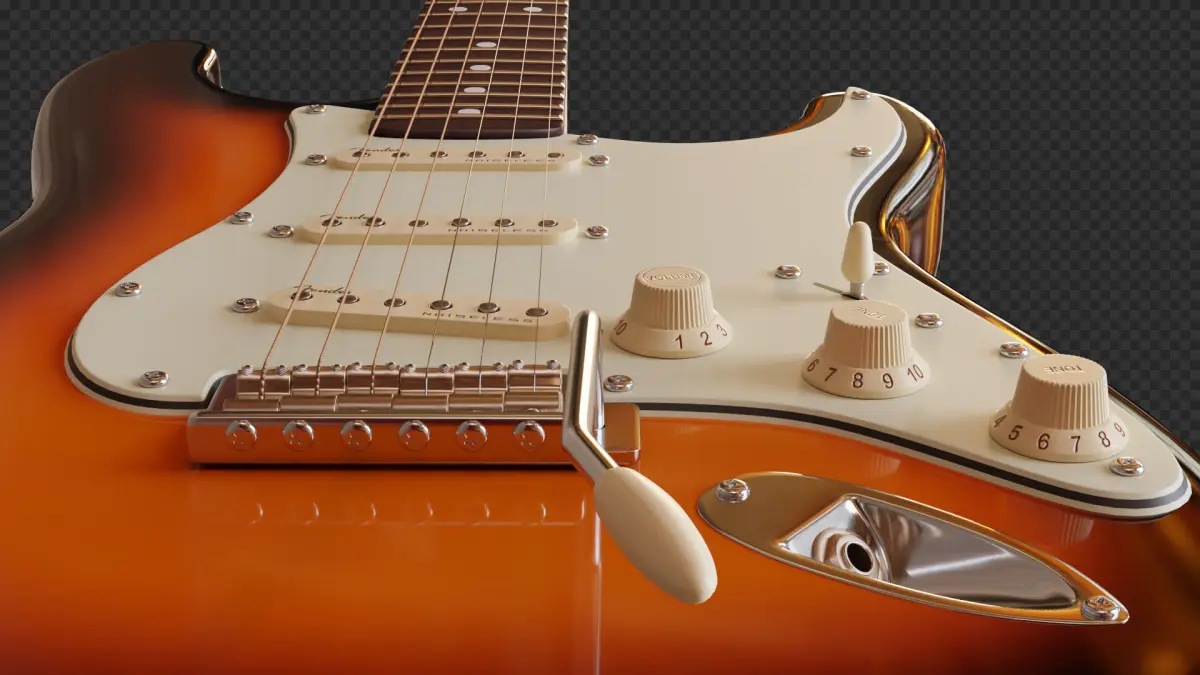 A high-quality 3D model of an electric guitar Fender Stratocaster