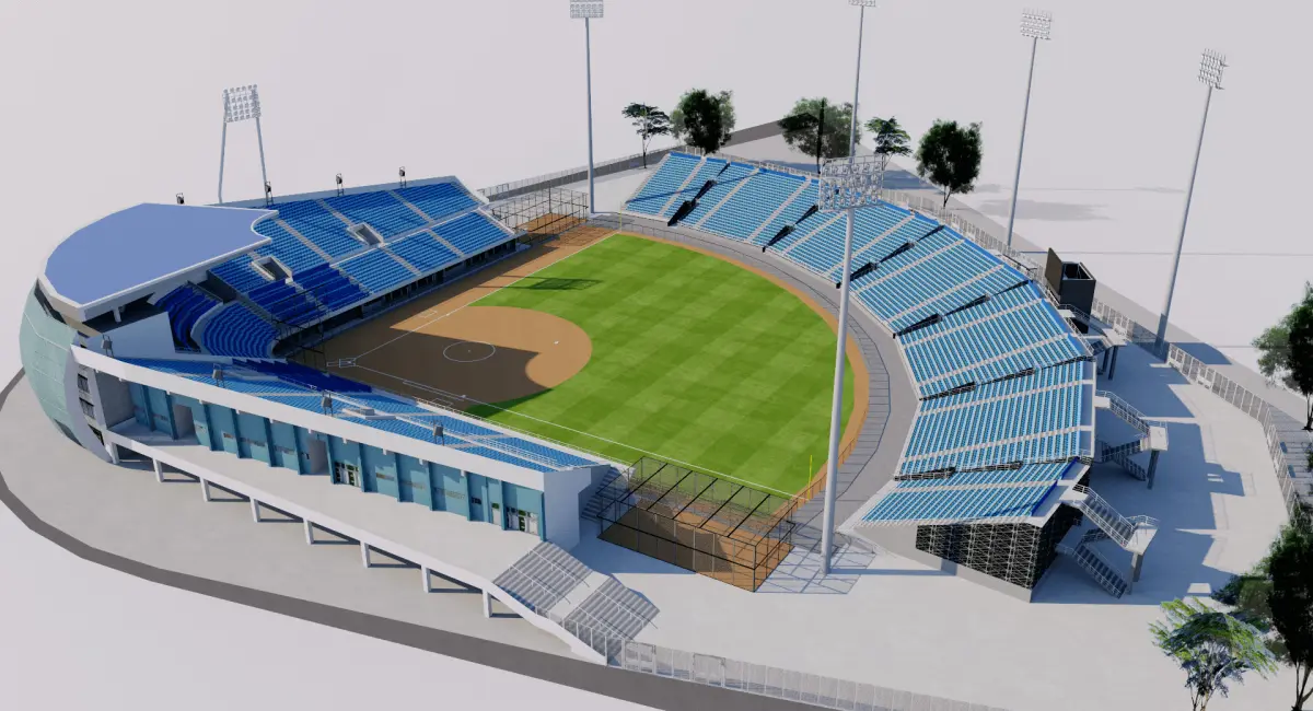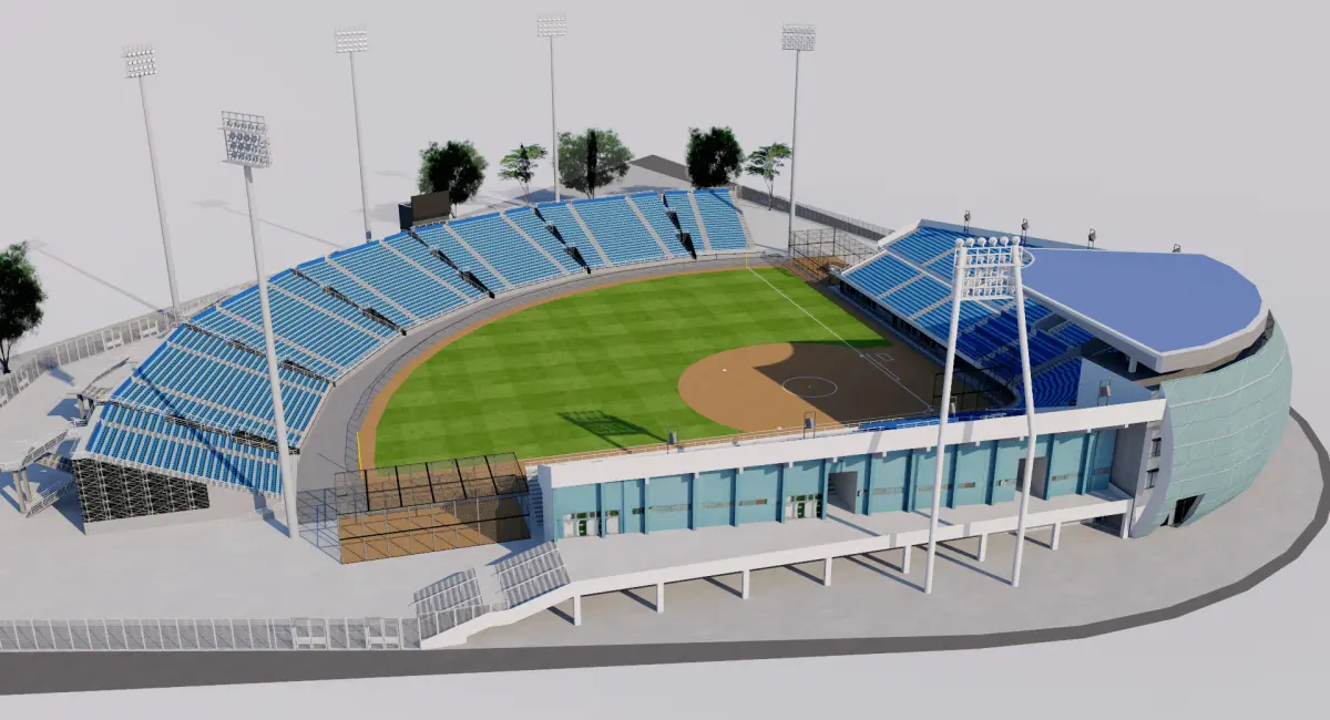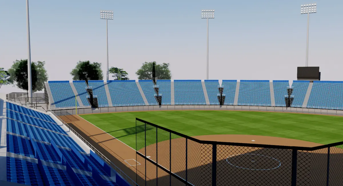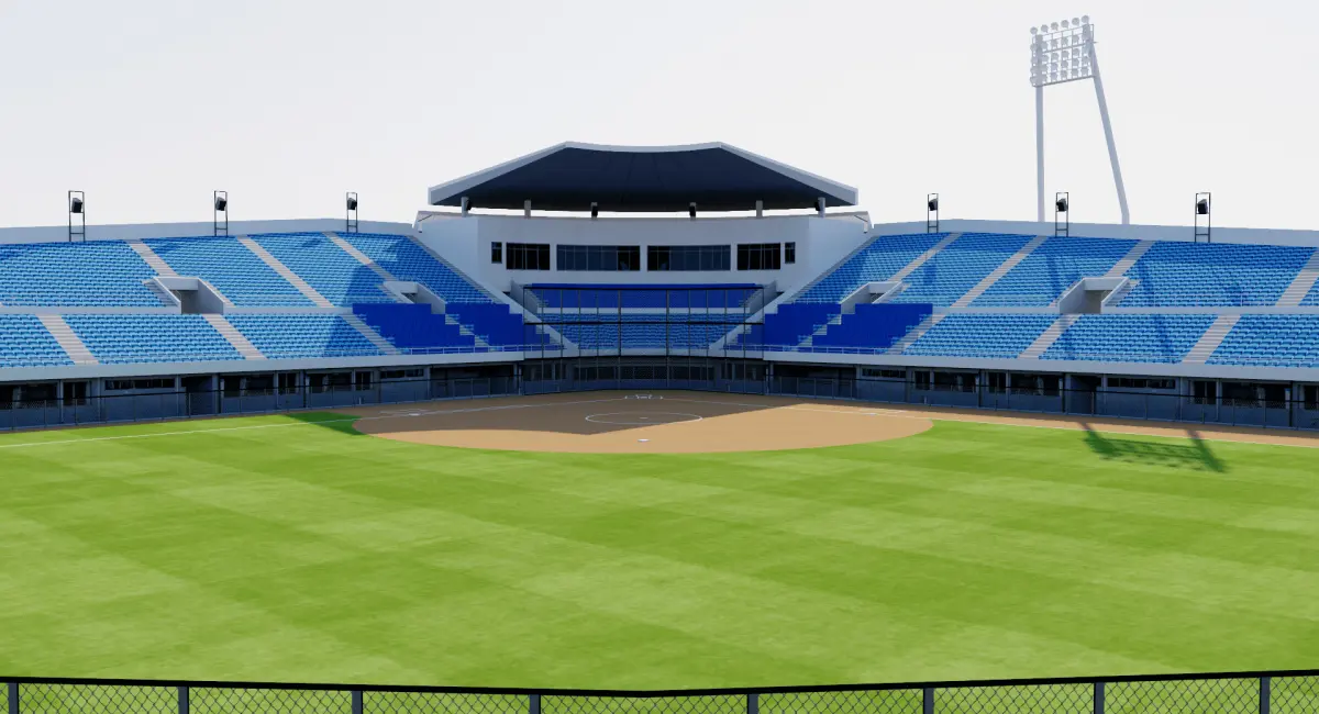 Starter model. Approximate dimensions. Bleachers and seats in 2D texture. Render setup not included.
