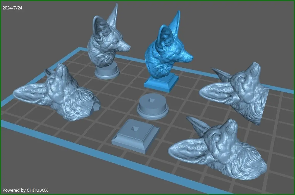 520K STL, OBJ triangulated mesh, Fennec fox head on the base in parts
