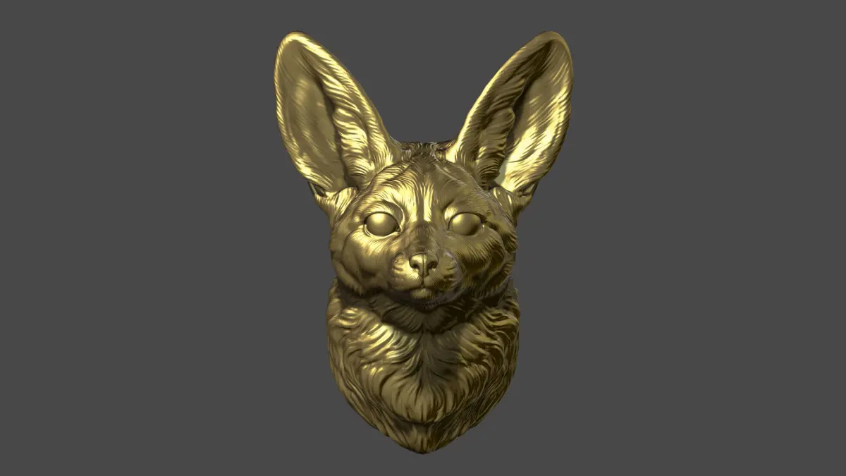 500K STL, OBJ triangulated mesh, Fennec fox head on the wall