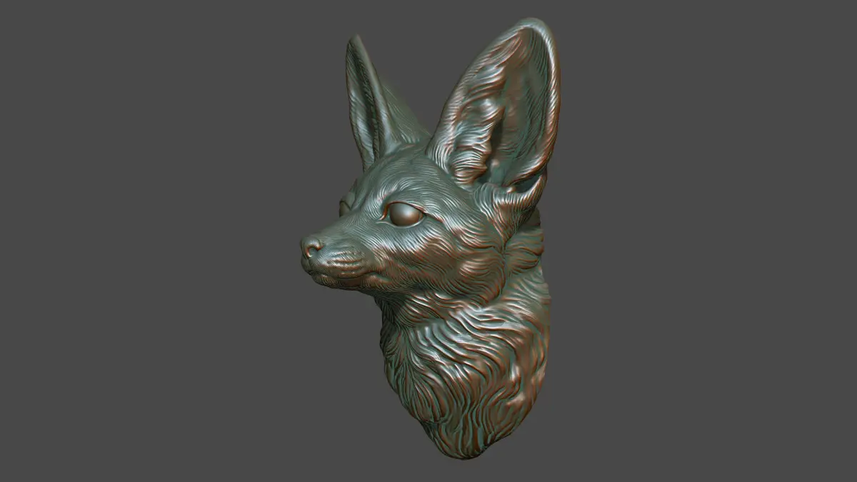 500K STL, OBJ triangulated mesh, Fennec fox head on the base marged