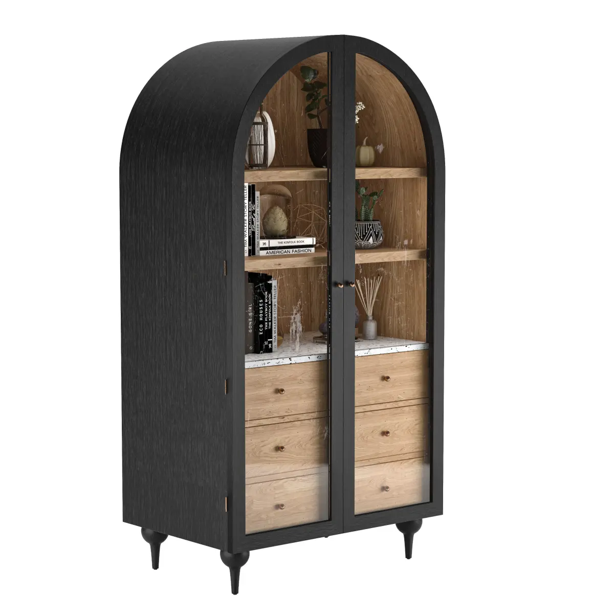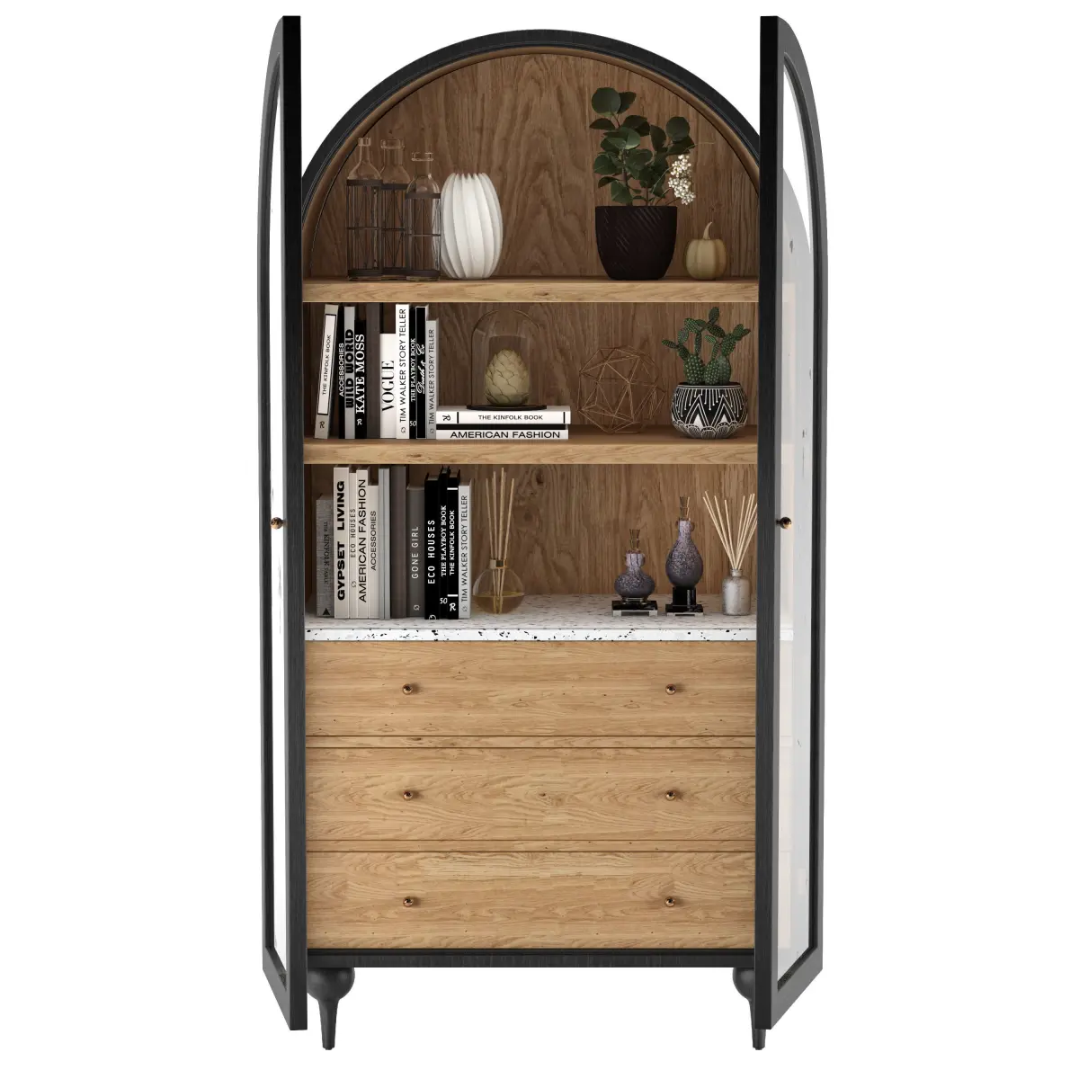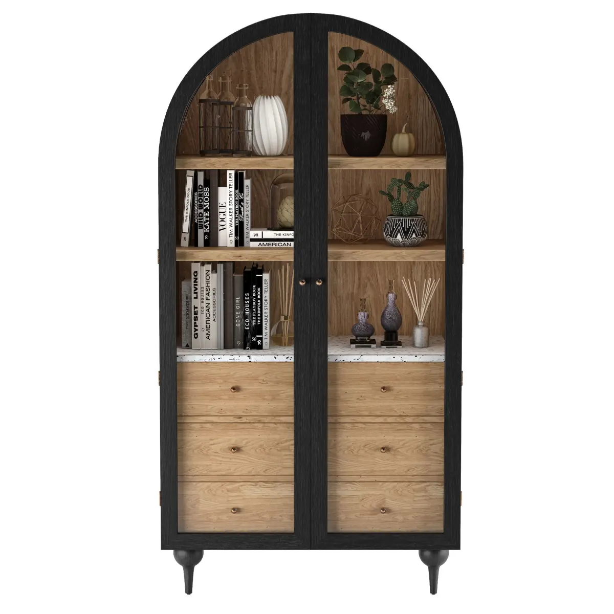 From its buttoned-up hardware to its arched silhouette perched upon ballooned feet, this storage cabinet exudes endless charm. Marble-topped drawers, perfect for keeping plants, books, micelanius etc.Dimensions: 60cm x 90cm x 180cm