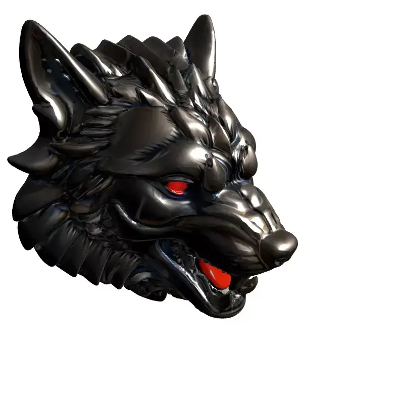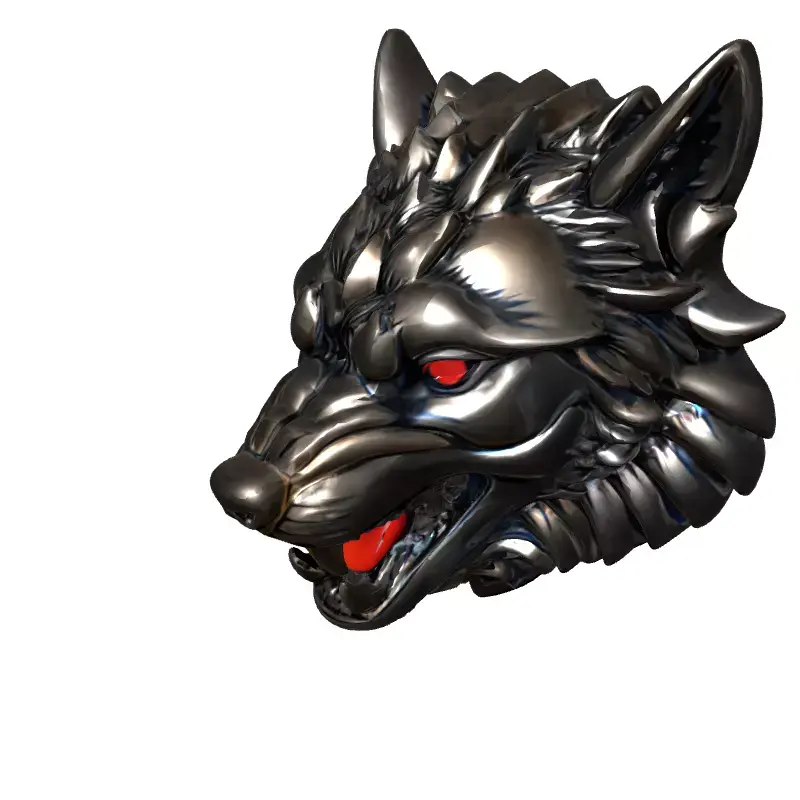 This highly detailed 3D model presents a formidable and intricately stylized wolf head, showcasing a striking metallic finish and piercing red eyes. The design features elaborate carvings and a fierce, open-mouthed expression, conveying immense power and a mythic presence. This versatile asset is perfect for a wide array of creative projects, including game development as a captivating emblem for characters, weapon ornamentation, environmental props, or a distinctive UI element. Its robust detail also makes it ideal for architectural visualization as a decorative facade, an impressive statue, or a focal point in an AR/VR experience. Furthermore, the model is exceptionally well-suited for high-quality digital art compositions and can be prepared for 3D printing, enabling the creation of unique physical decor or medallions. It supports popular 3D file formats such as GLB, OBJ, STL, ABC, DAE, FBX, USD, and PLY, ensuring broad compatibility across various platforms and software. Crafted with clean topology, the model is optimized for both real-time applications, potentially leveraging baked normal maps for efficiency, and static renderings requiring high fidelity. The model features UV unwrapping and includes PBR-ready textures to achieve its realistic metallic sheen and vibrant red accents. This guarantees a professional and visually stunning result in any rendering environment, enhancing realism and visual impact.