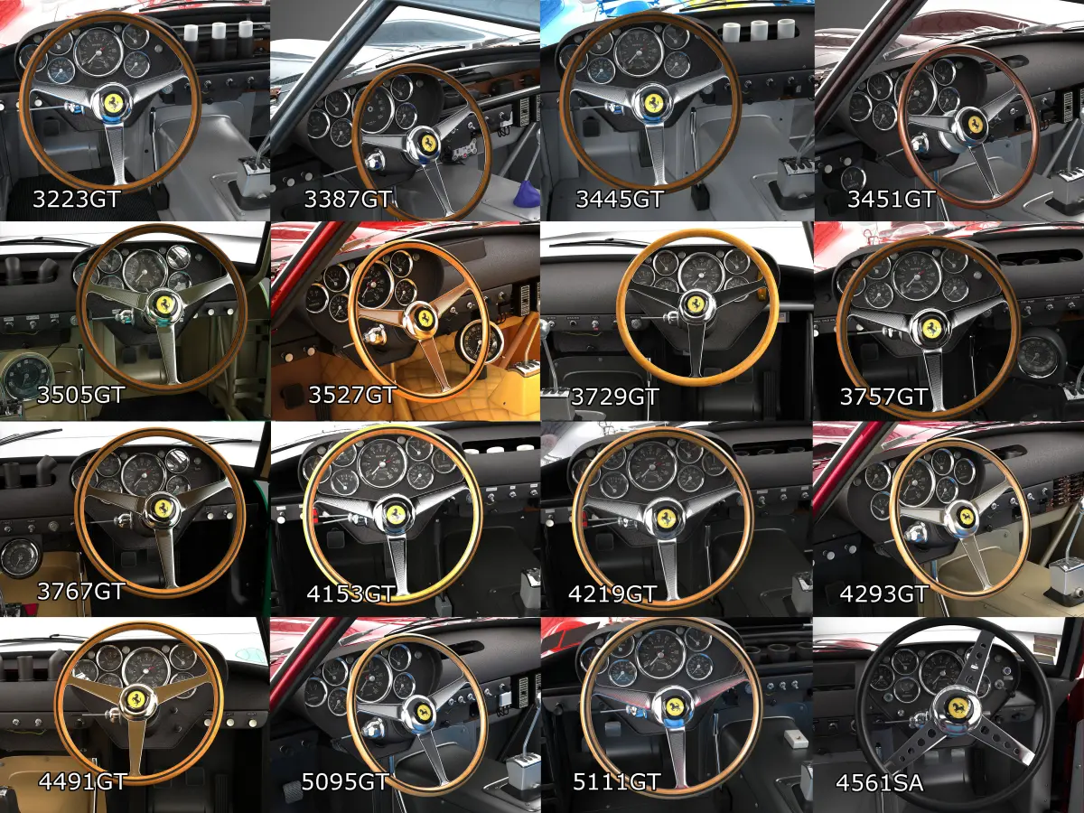 All of the models are complete with detailed interior, engine, boot and chassis. The collection includes these cars: 3223GT, 3387GT, 3445GT, 3451GT, 3505GT, 3527GT, 3729GT, 3757GT, 3767GT, 4153GT, 4219GT, 4293GT, 4491GT, 5095GT, 5111GT, 4561SA . You can also find them sold separately if you click on my username or search for a particular model's serial number and you will see many more previews for each model. If you need a different 250 GTO that is not on the list, I might be able to provide it to you if you contact me.