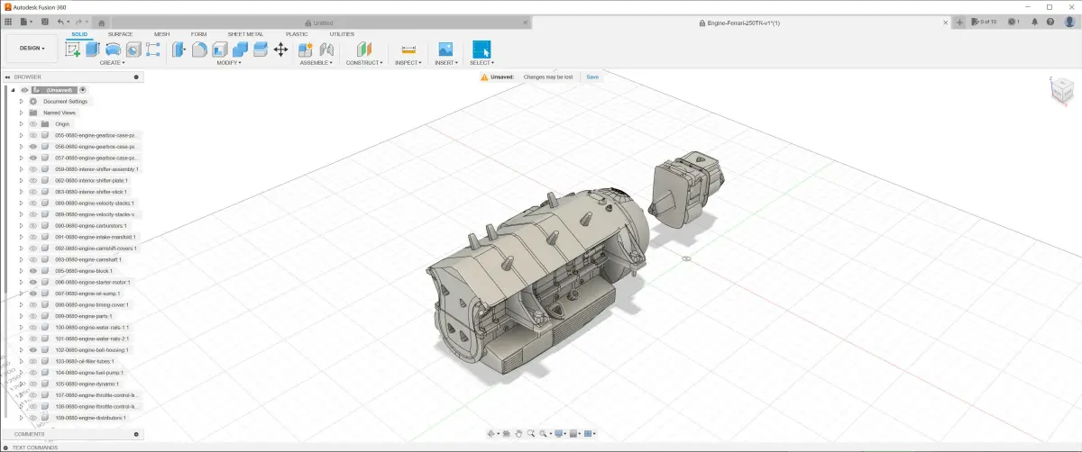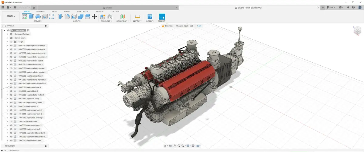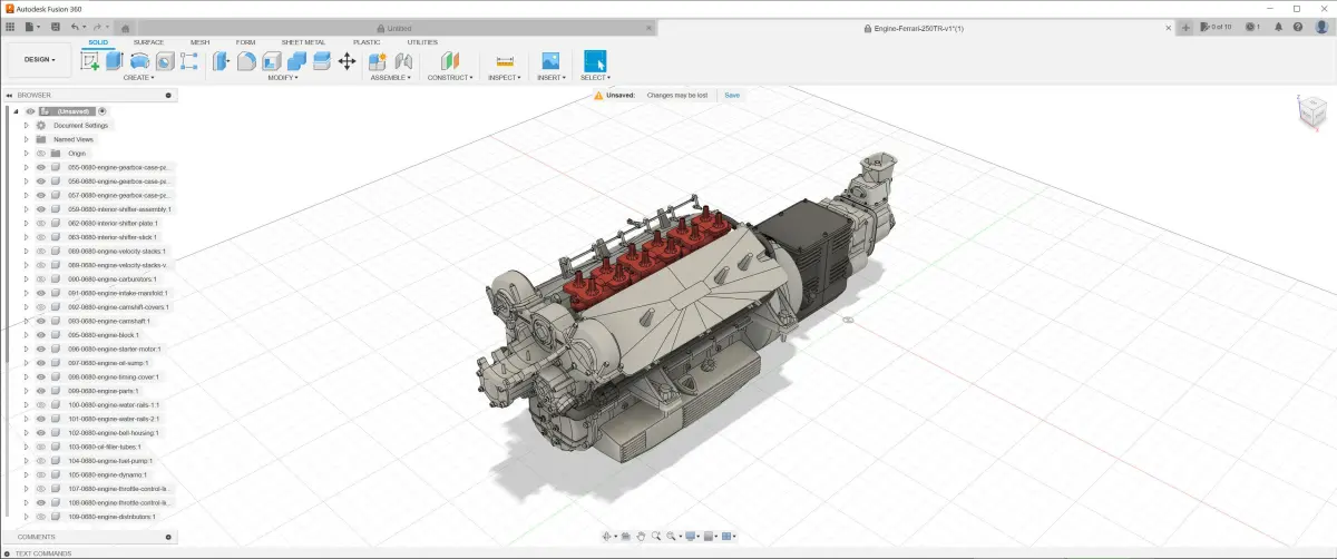 This is a very detailed 3d model of a 1957-61 Ferrari 250TR Colombo 3L engine with gearbox included. The 250 Testa Rossa engine was based on Colombo-designed 3.0L V12 used in 250 GT road and racing cars. Carlo Chiti and other Ferrari engineers made several modifications to increase the performance of this already proven engine. The starting point was a 1953-style cylinder block with an overall capacity of 2953 cc, a 73mm bore and 58.8 mm stroke. Six two-barrel Weber 38 DCN carburetors fed the engine, increased from the 3 carburetors typical for 250 GT engines. The cylinder heads used single overhead cams, 2 valves per cylinder and helical double-coil valve springs (a first for Ferrari). It was mainly used on the Ferrari 250 Testa Rossa cars and also on the Ferrari 625TRC S/N 0680. You can find the last one as a full kit if you click on my username.