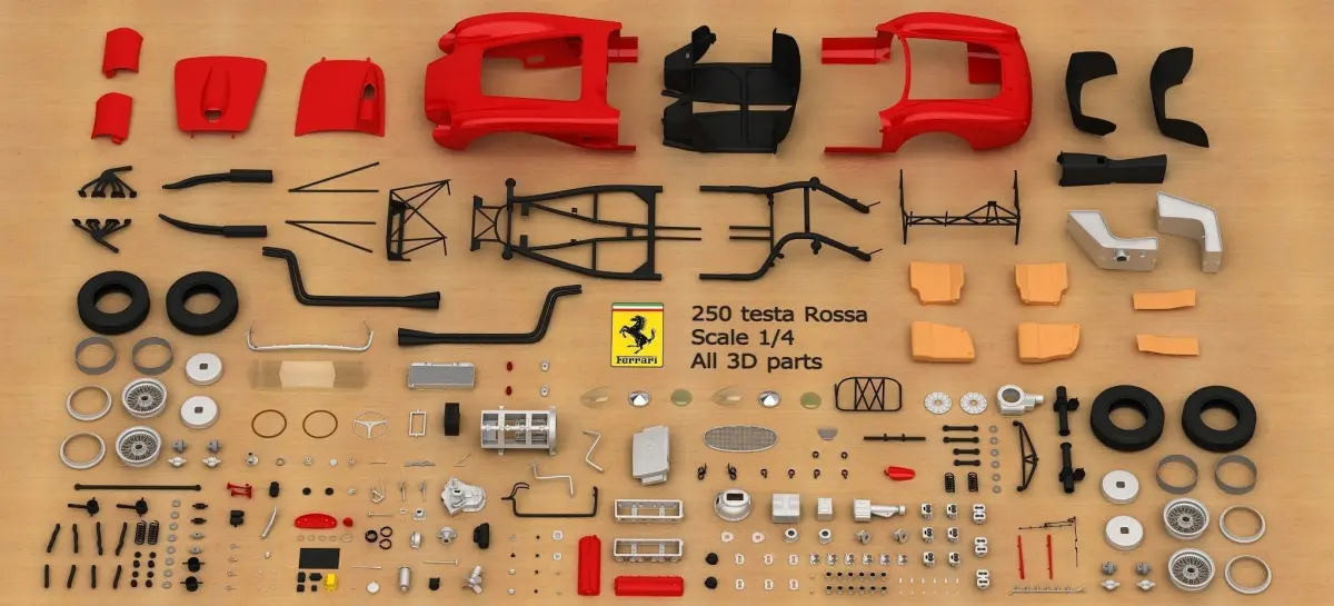 One of the greates cars ever build by Ferrari.With full chassis, engine, trunk and much more.This is a giant kit, scale 1/5 with over 600 parts (excluding all the screws)Its a full model.It took a year to draw this car from group up.
