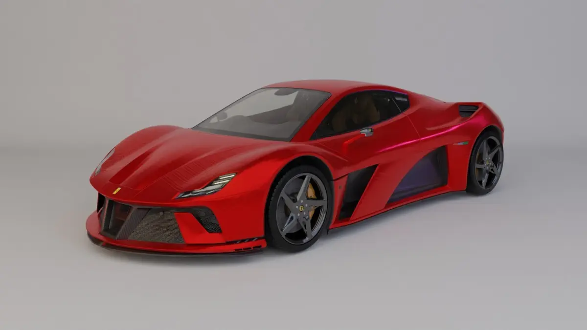 I made this model of a Ferrari 296 GT with parts from a formula 1 racecar.It has interiors and is already ready with textures.All files comes with the car with a matte black coating, camera, lighting and a backdrop.I made it using blender 3.2 and rendered the images using cycles render engine. No extra image textures is necessary for the model.If bought, you recieve .blend, .fbx, .mtl, and .obj files.Can be rendered on cycles, eevee or workbench.Disclaimer : The bridge seen in some of the images is not included. It was only used for the purpose of the render to showcase the car.