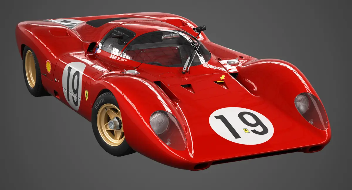 This is a very detailed 3d model of the modern version of 1969 Ferrari 312 P Berlinetta serial number 0872 later stamped to 0868 to prevent administrative problems at the Le Mans race.