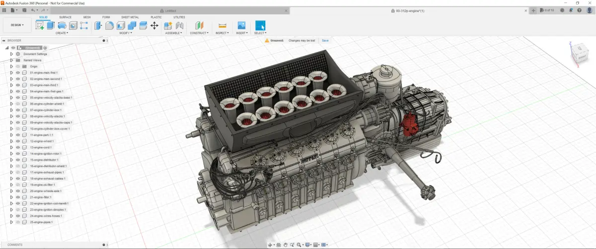 This is a very detailed 3d printable model of a 1969 Ferrari 312 P engine with gearbox included. It is a 3 litre (2991 cc) engine, with a bore of 78.5 mm and a stroke of 51.5, unitary displacement of 249.25 and a maximum power of 450 bhp at 10800 rpm. It is used by the Ferrari 312 P Berlinetta / Spyder models.