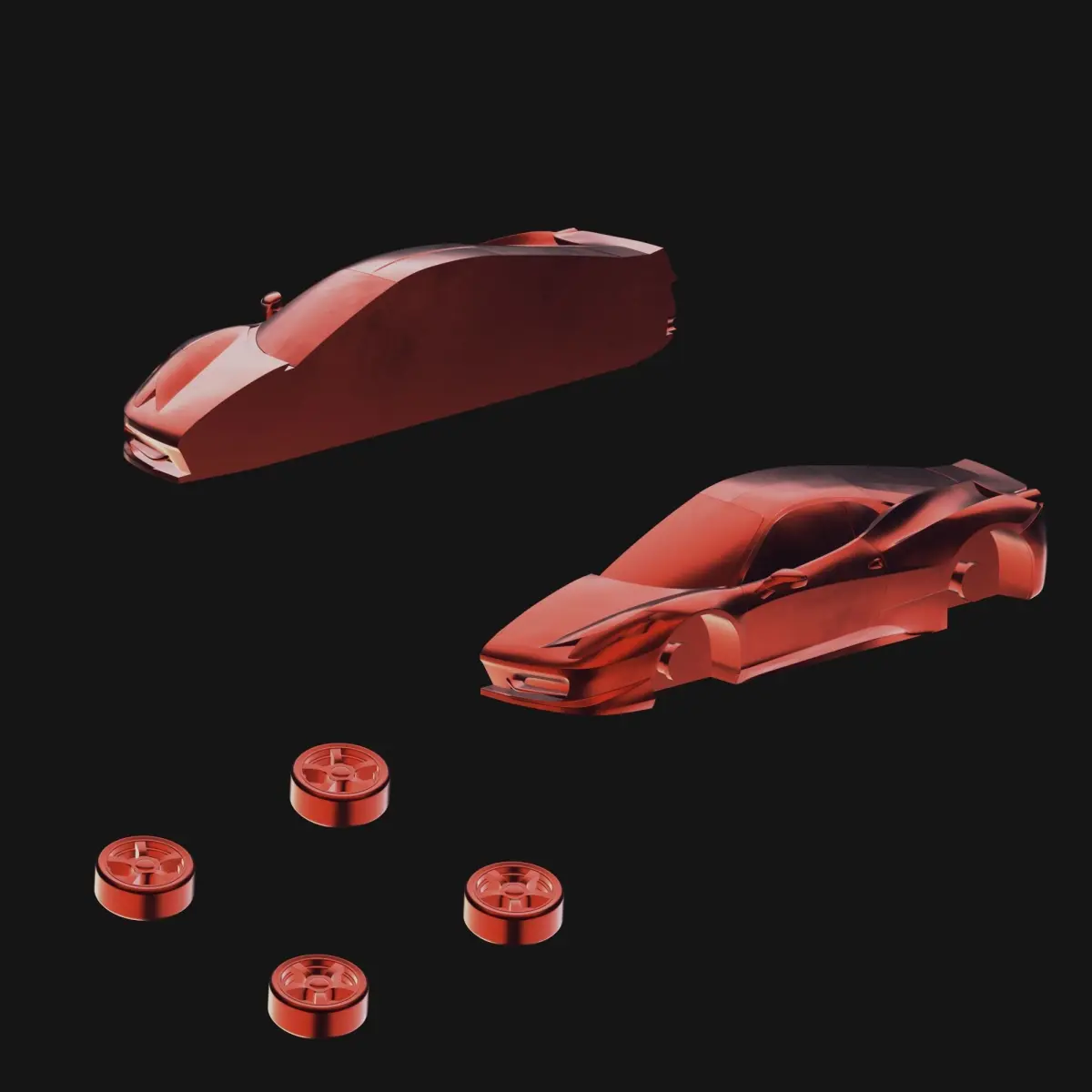 You will get full and cut versions of the Ferrari 458. The parts are cut to easily fit in Ender 3 printer size (220 x 220 x 250 mm).