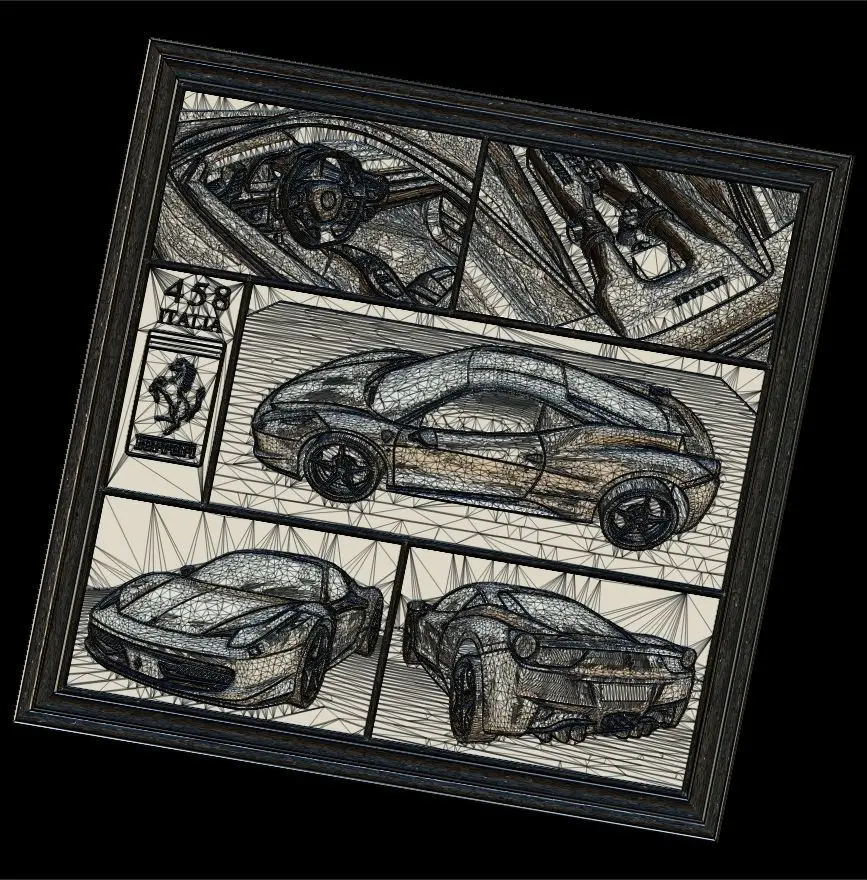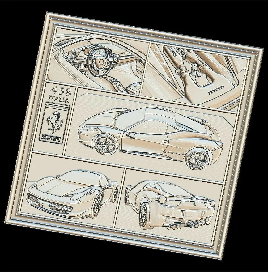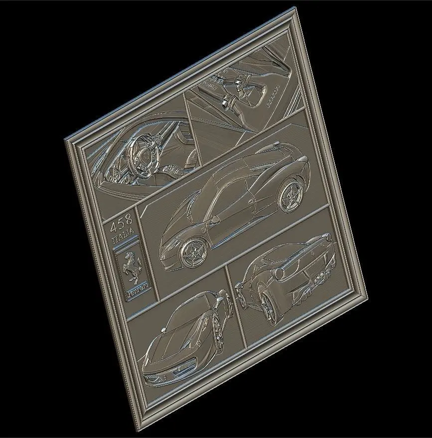 Ferrari 458 V1 Panno STL File for CNC Relief engraving
