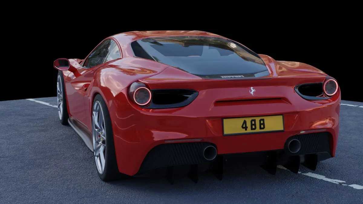 Ferrari 488 model made in Blender, so I recommend use .blend format. Renders are made in Blender cycles engine.PBR model with detailed exterior and non detailed interior (look at previews) . Recomended use in VFX and Archviz exterior renders, easy to append to your project. Can be easily modified parts are separated meshes in one object because of easy manipulation of whole car , can be easily separated to more objects.