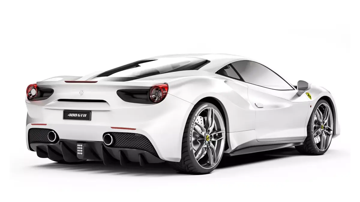 Ferrari 488 GTB (Type F142M) is a modernized version of the 458 Italia model, which changed the naturally aspirated engine to a turbocharged one. The main elements are prepared for TurboSmooth smoothing (2 Iteration). The body elements, wheels, and interior are worked out - conditionally.
