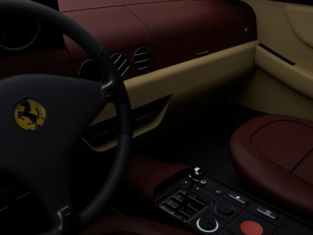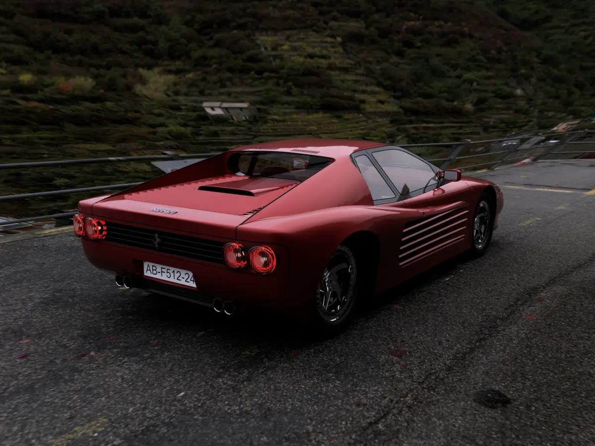 Model of a custom Ferrari 512 Testarossa M. Fully made interior - which can be easily removed for games and animations (speed up rendering). It's easy to rig components for animation. Made and rendered using f3D