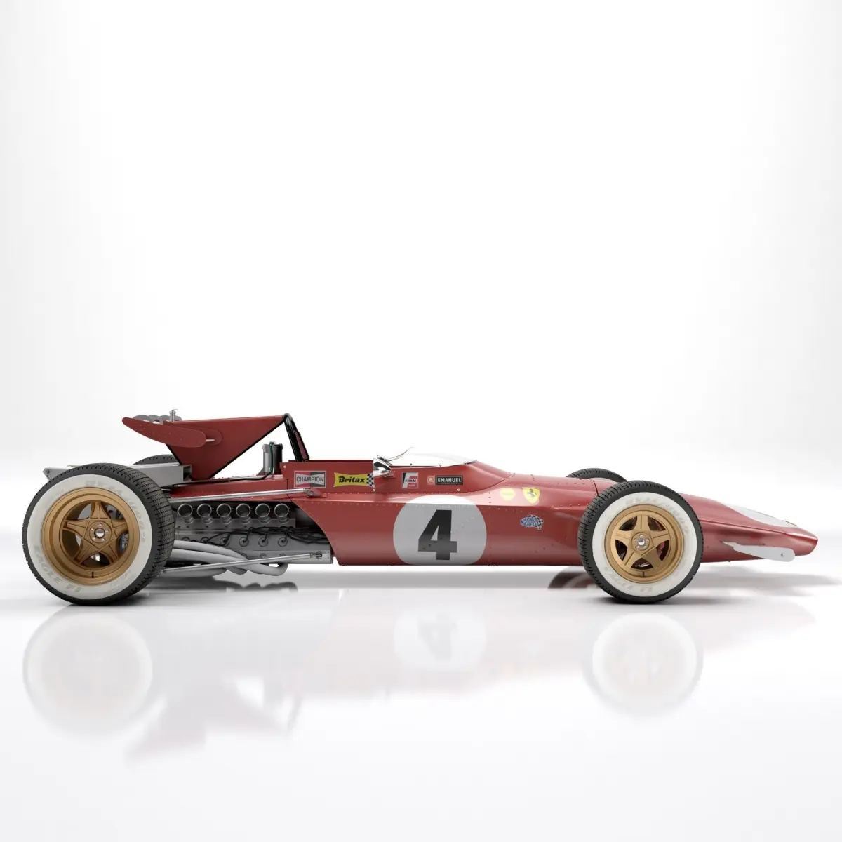 Very high detailed and accurate Ferrari F1 312 B 1970 3d model. High quality polygonal model, correctly real-world scaled and centered at 0, 0, 0 for an accurate representation of the original object. High quality texture.