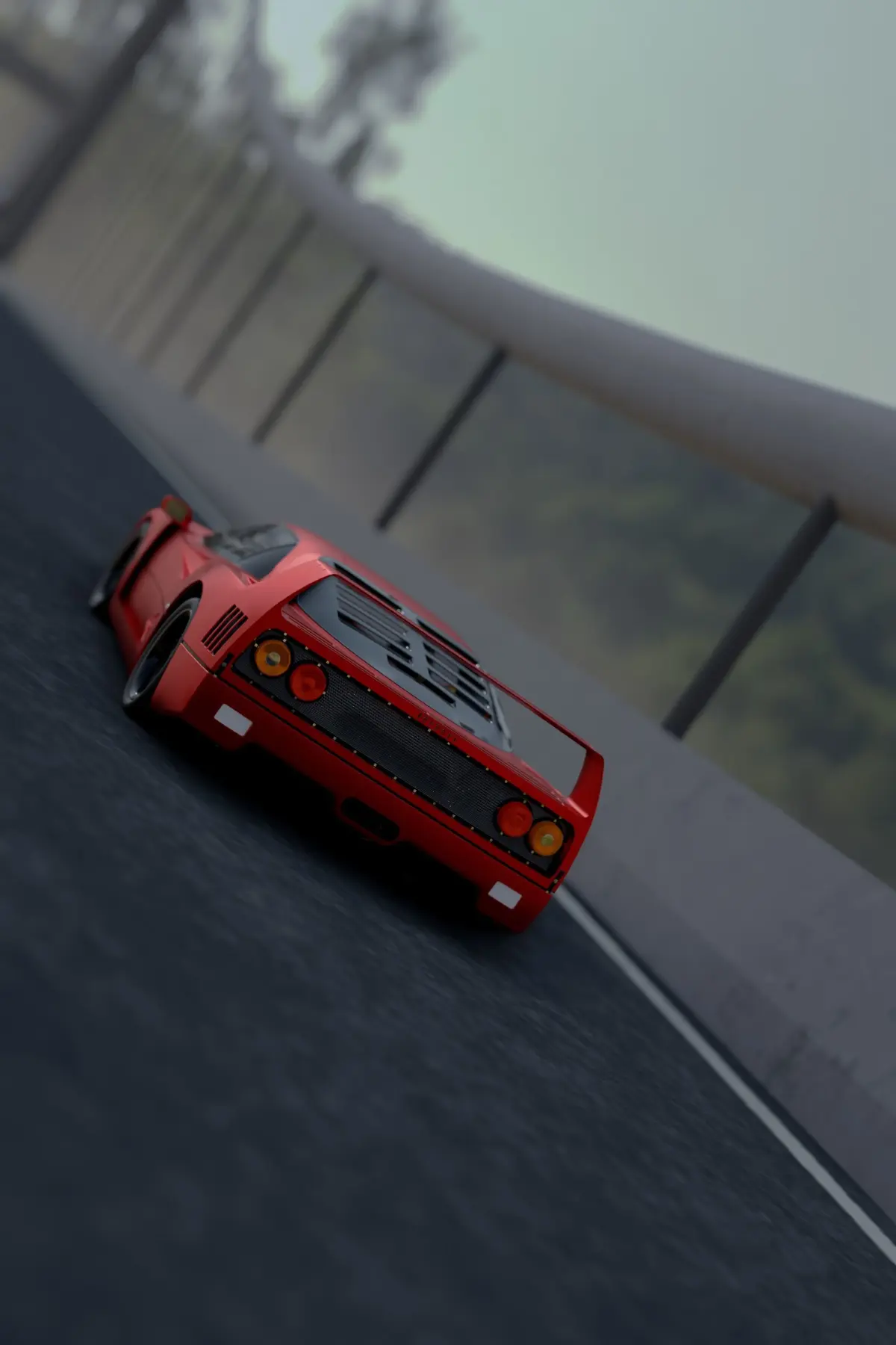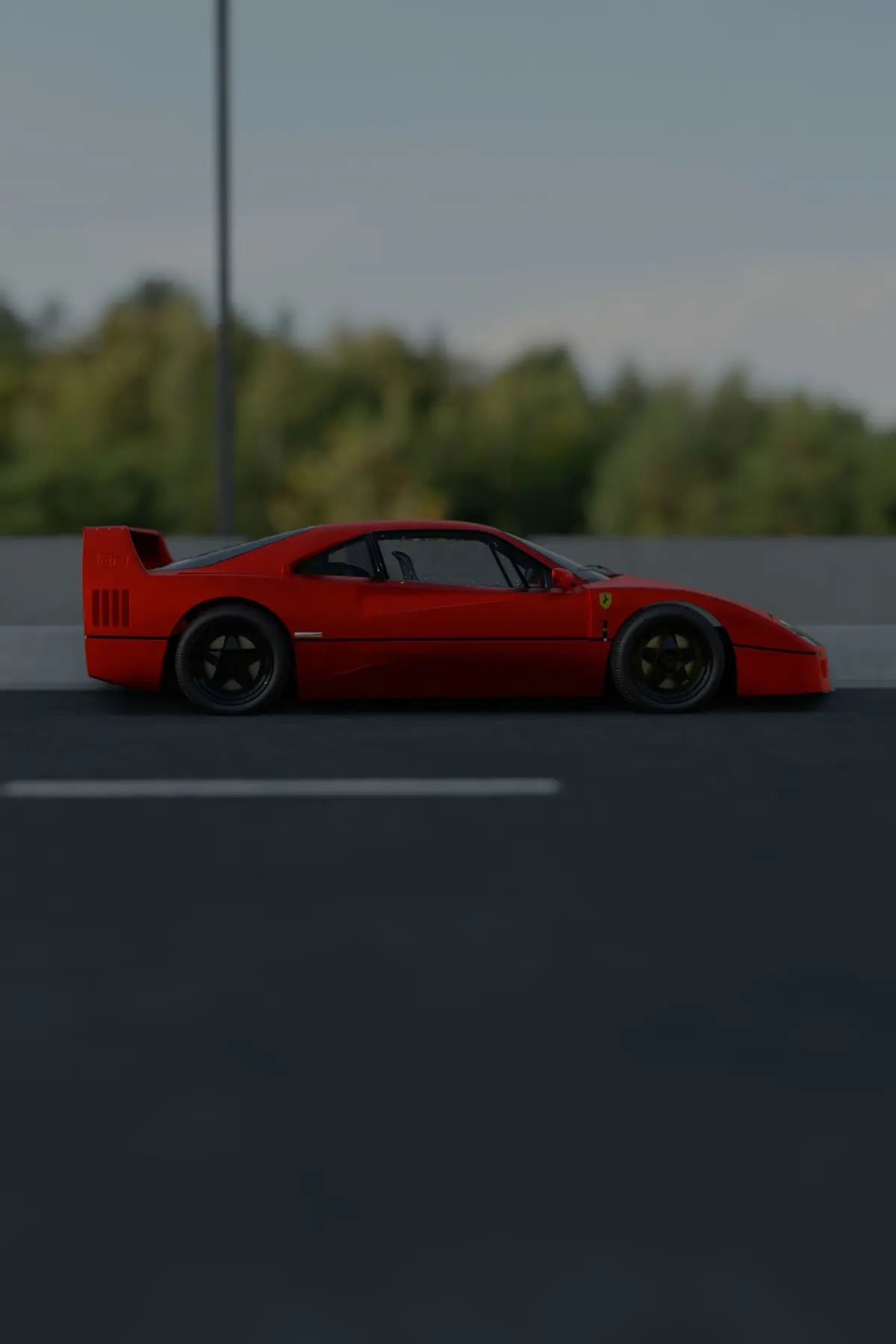 The Ferrari F40 is a supercar with a centrally located engine and rear-wheel drive. This two-door coupe was produced from 1987 to 1992 as the successor to the Ferrari 288 GTO. At the time, it was the fastest, most powerful and most expensive Ferrari road car. From 1987 to 1989, the Ferrari F40 held the title of the world's fastest production road car, and was the fastest, most powerful and most expensive Ferrari car during its production. The car debuted with a suggested retail price of around $400,000, although some buyers reportedly paid as much as $1.6 million. A total of 1,315 cars were produced.
