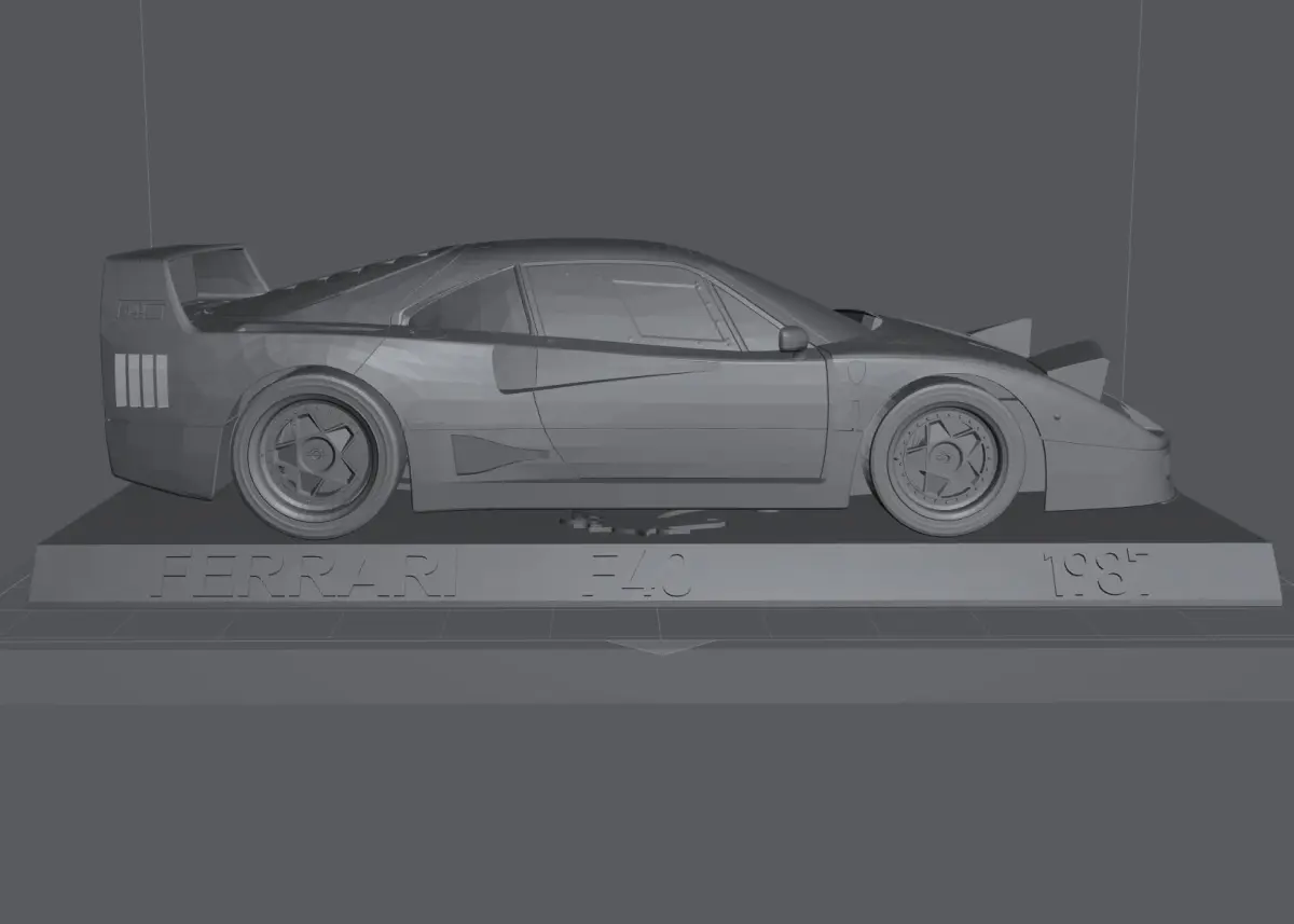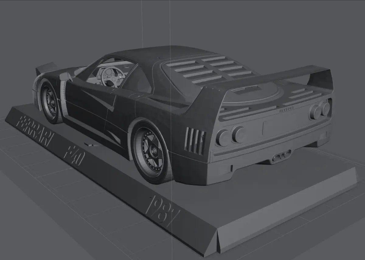 Réplique de la Ferrari F40.24 piècespoids 191 MOcertaine pièces peuvent être fragile dû à leurs épaisseurs et d'autre pièces peuvent n'hésitez un léger ponçage pour être parfaitement ajustée.n'hésiter pas a augmenter la taille du modèle en fonction de votre imprimante 3d.la voiture est très détaillé et complété a l'original.en cas de soucis n'hésiter pas a me contacter.bonne impression a tous.d'autres sont en préparation ;)