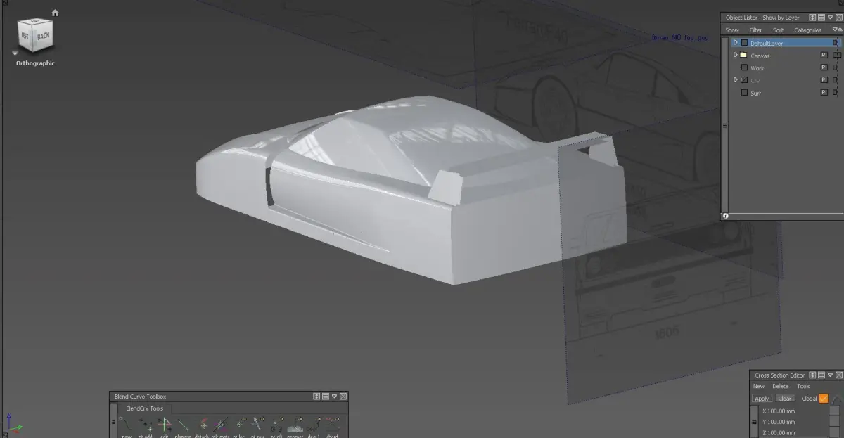 In this 3d model you can find the Ferrari F40, closed in teorical, without fillet, for continue my series of tutorial on Autodesk Alias.