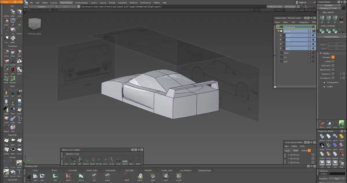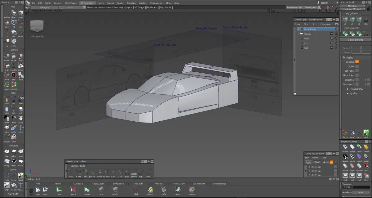 In this 3d model you can find the Ferrari F40, closed in teorical, without fillet, for continue my series of tutorial on Autodesk Alias.