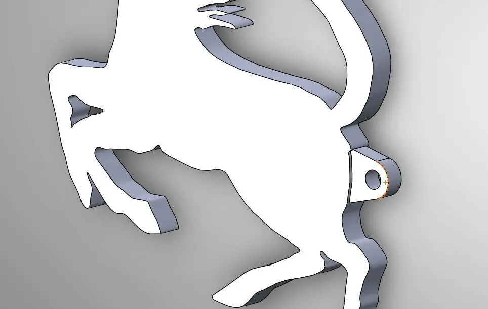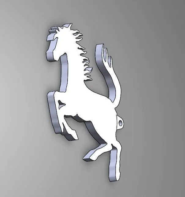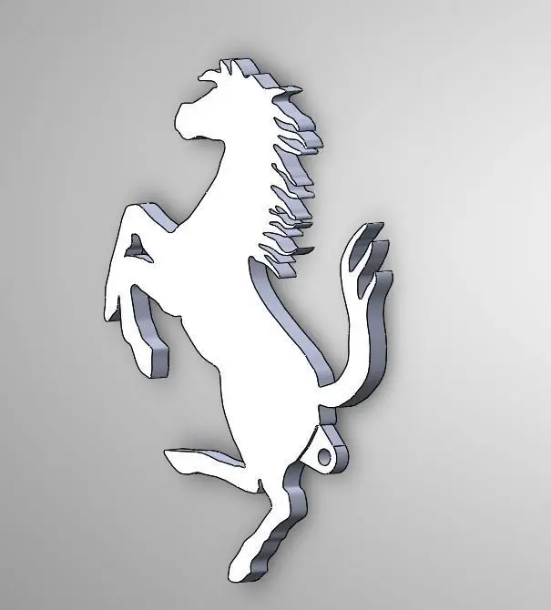 This 3D printable CAD model is designed as a keychain featuring the iconic Ferrari prancing horse emblem. The keychain showcases the detailed and dynamic silhouette of the horse, capturing its powerful mid-leap posture with extended legs and flowing tail. The design includes a strategically placed hole for attaching a keyring, ensuring it is both functional and aesthetically pleasing. The model's smooth curves and precise edges are optimized for 3D printing, providing a sturdy and durable keychain that pays homage to the luxury and performance associated with the Ferrari brand. This keychain is perfect for car enthusiasts, Ferrari fans, or anyone looking to add a touch of elegance to their keys.