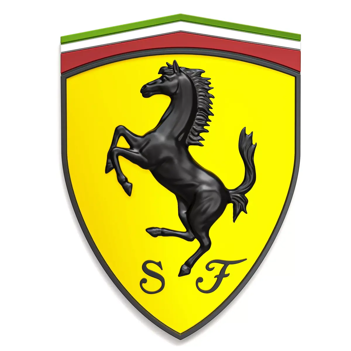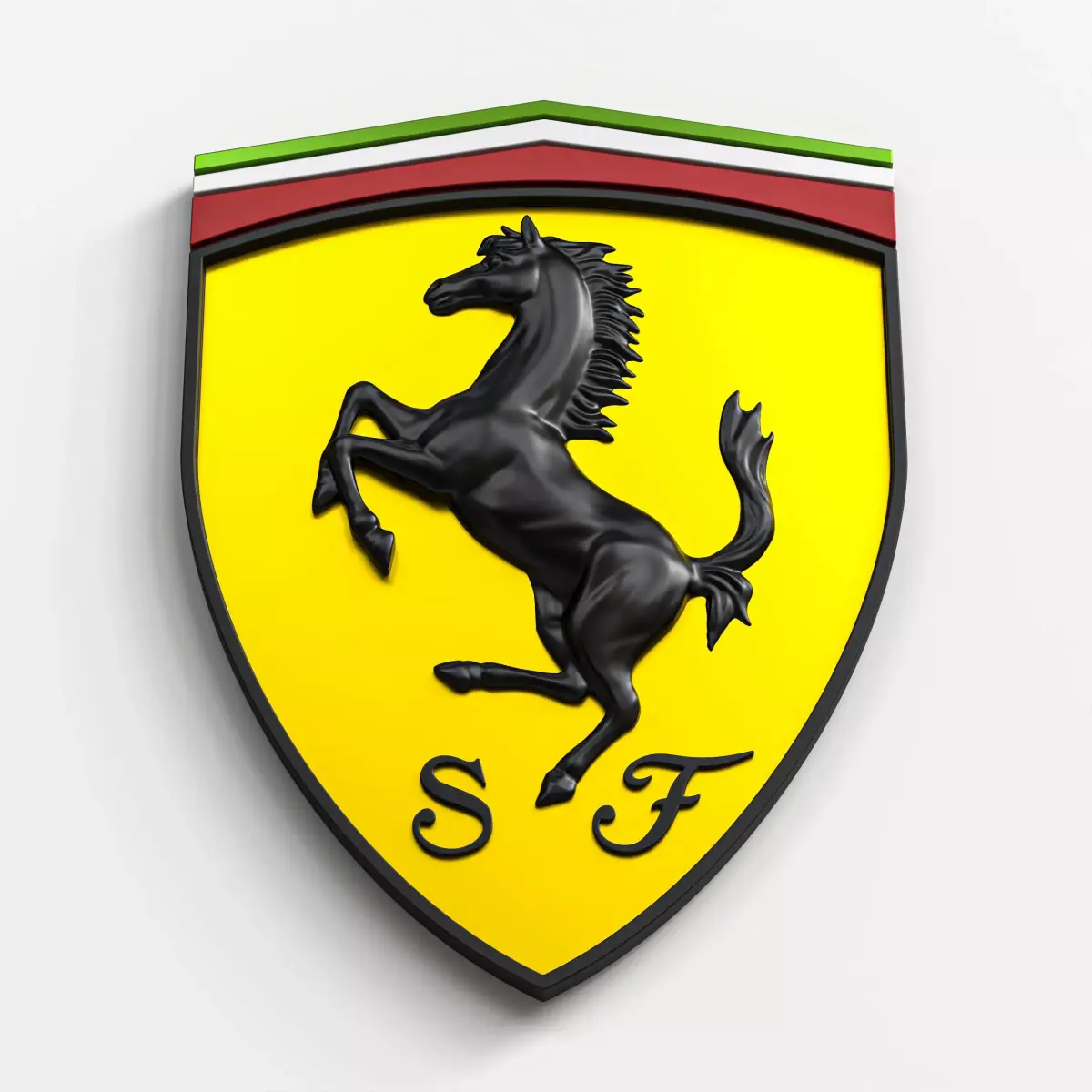 - Highly detailed Ferrari logo 3D print model designed for multi-color printing systems (AMS/MMU).