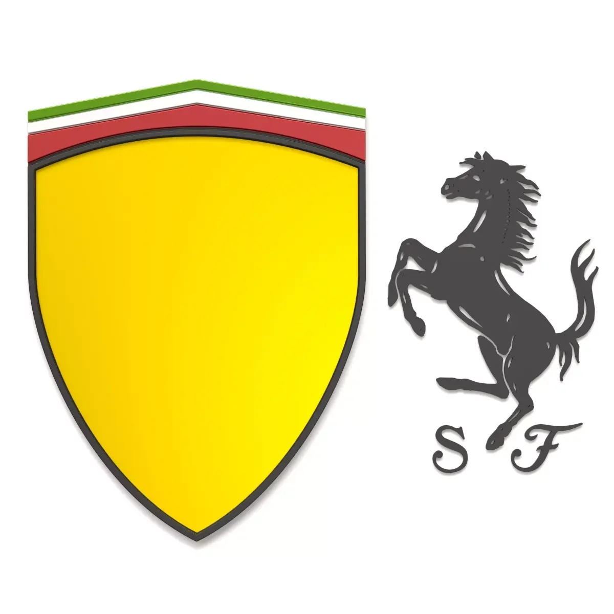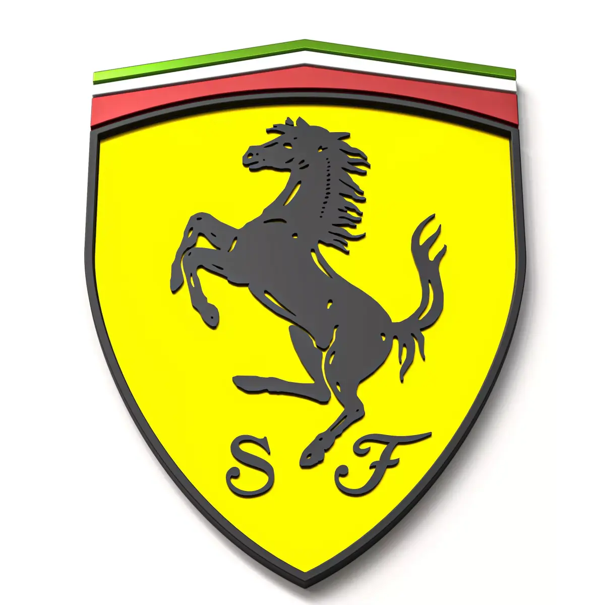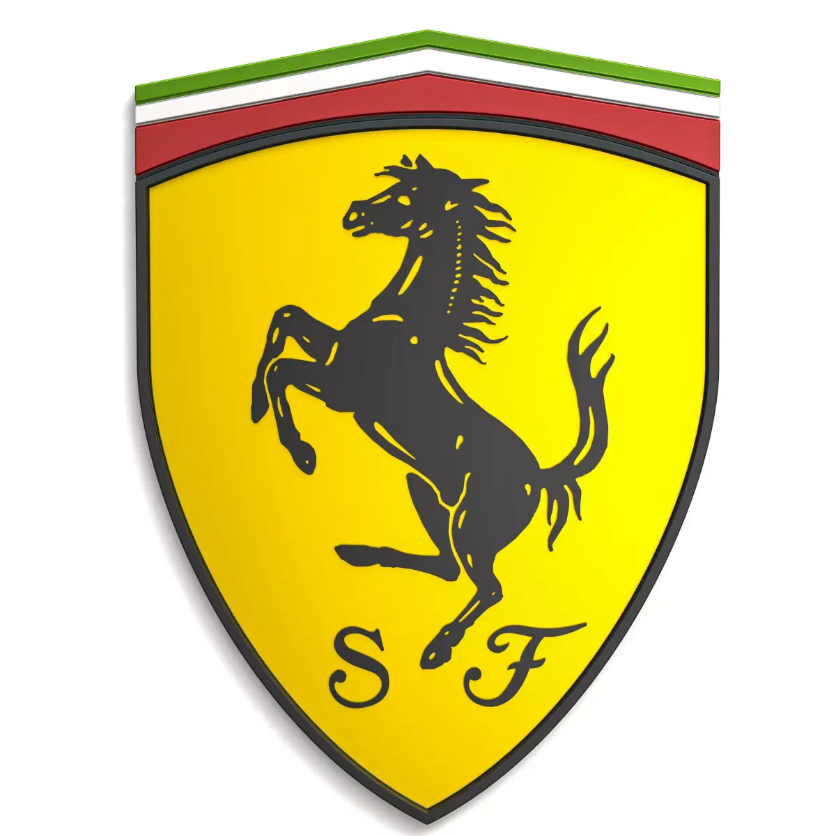 - Highly detailed Ferrari logo 3D print model designed for multi-color printing systems (AMS/MMU).