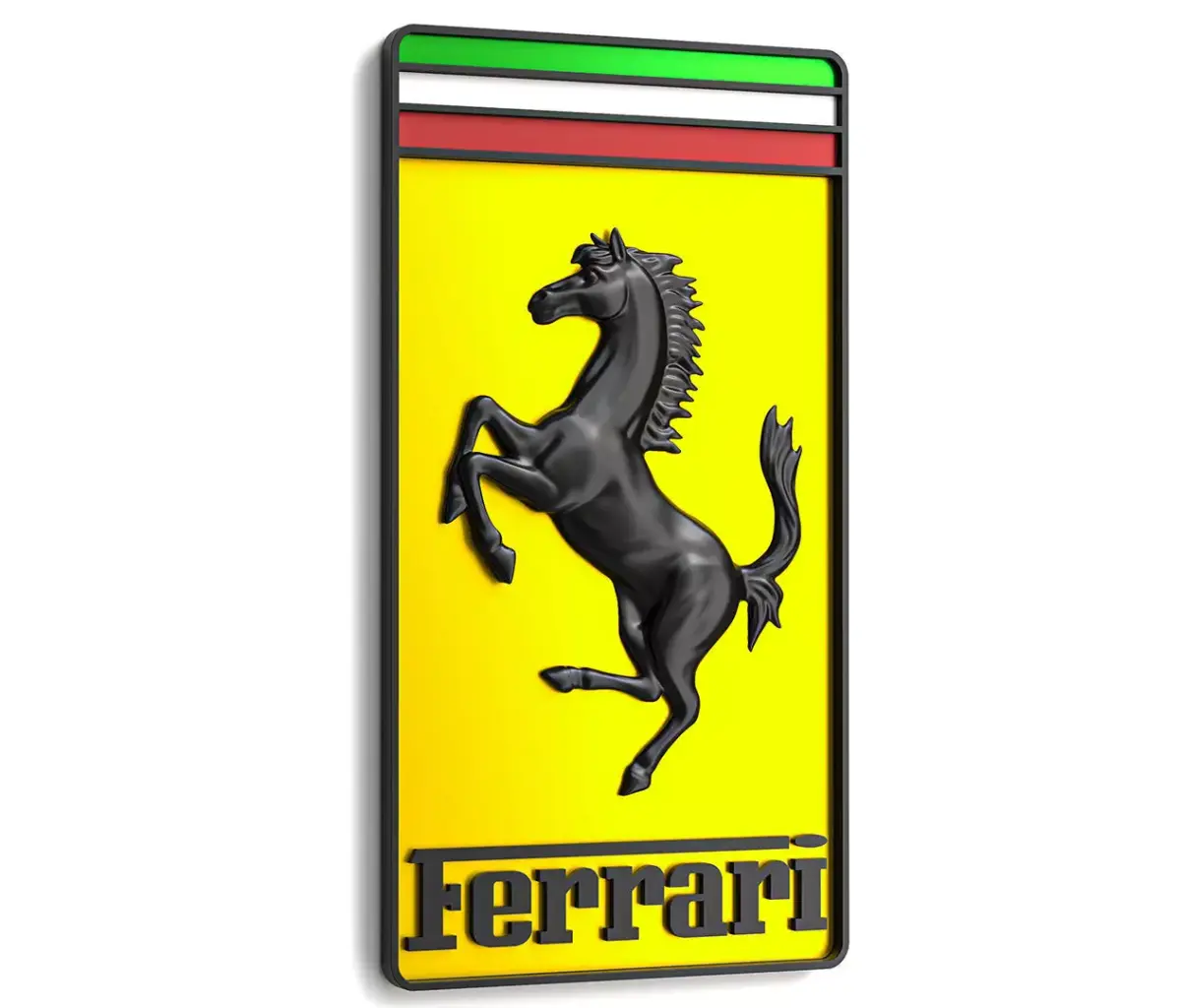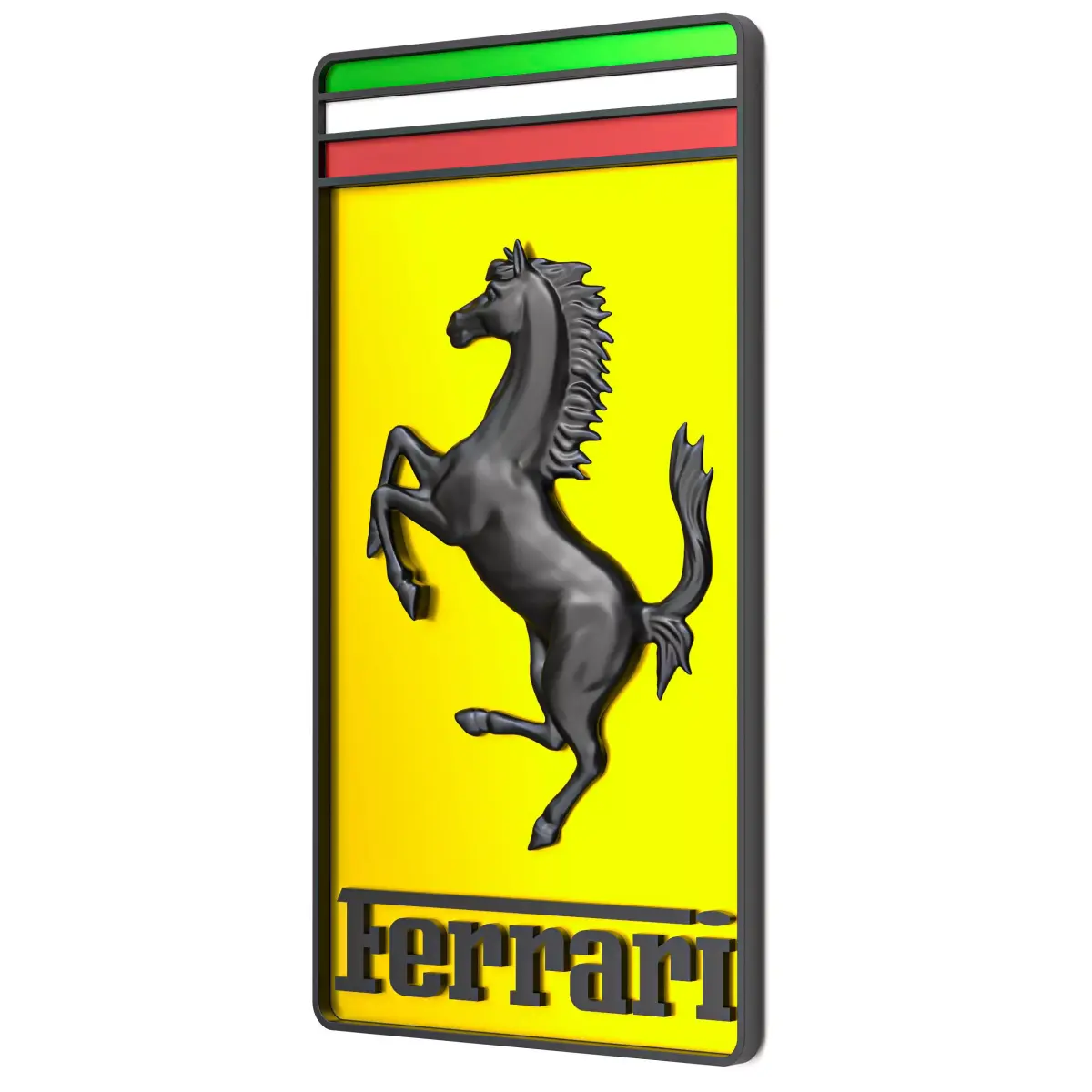 - Highly detailed Ferrari logo 3D model designed for multi-color printing systems (AMS/MMU).- The set includes separate files for each color/element, a standalone frame, and an all-in-one assembled version.