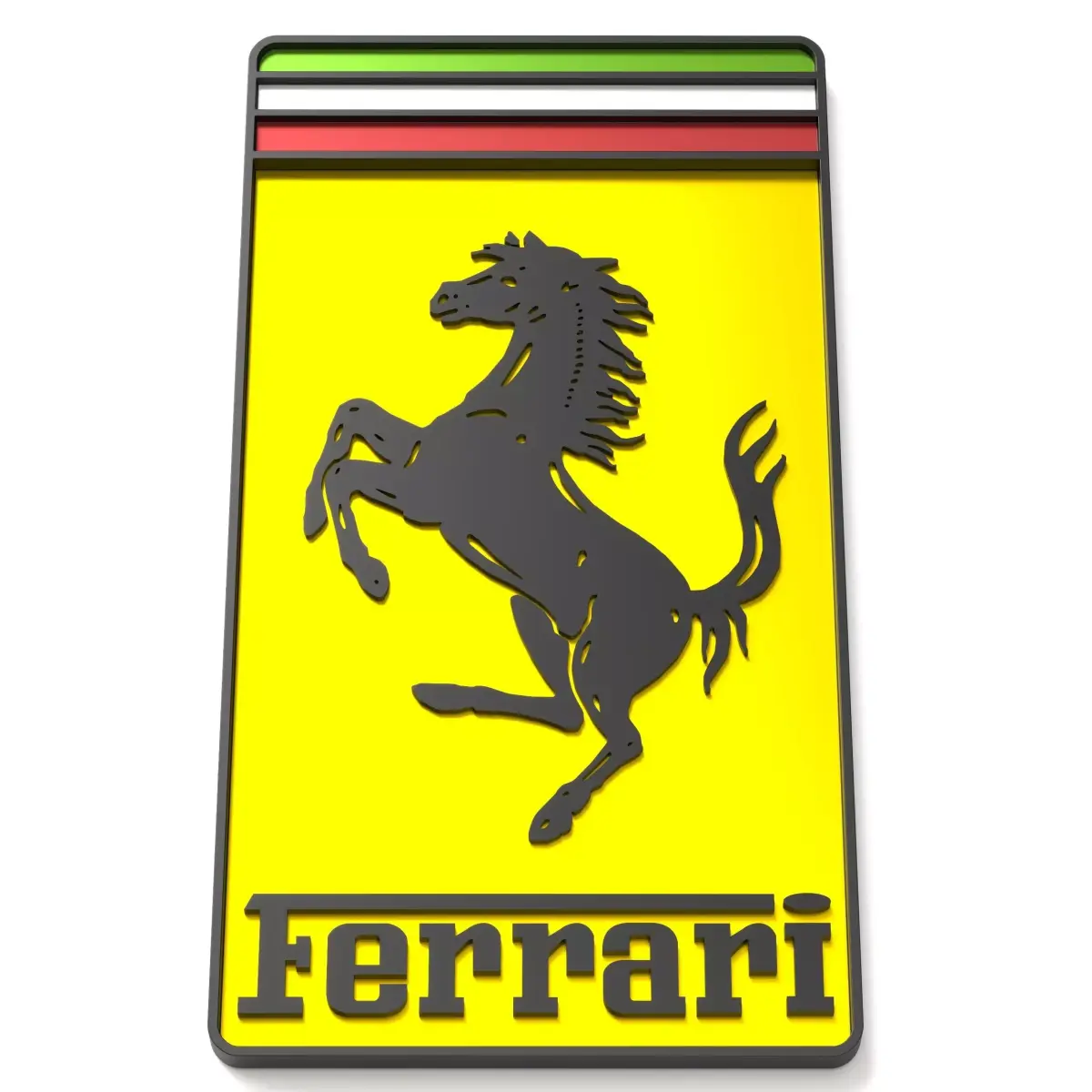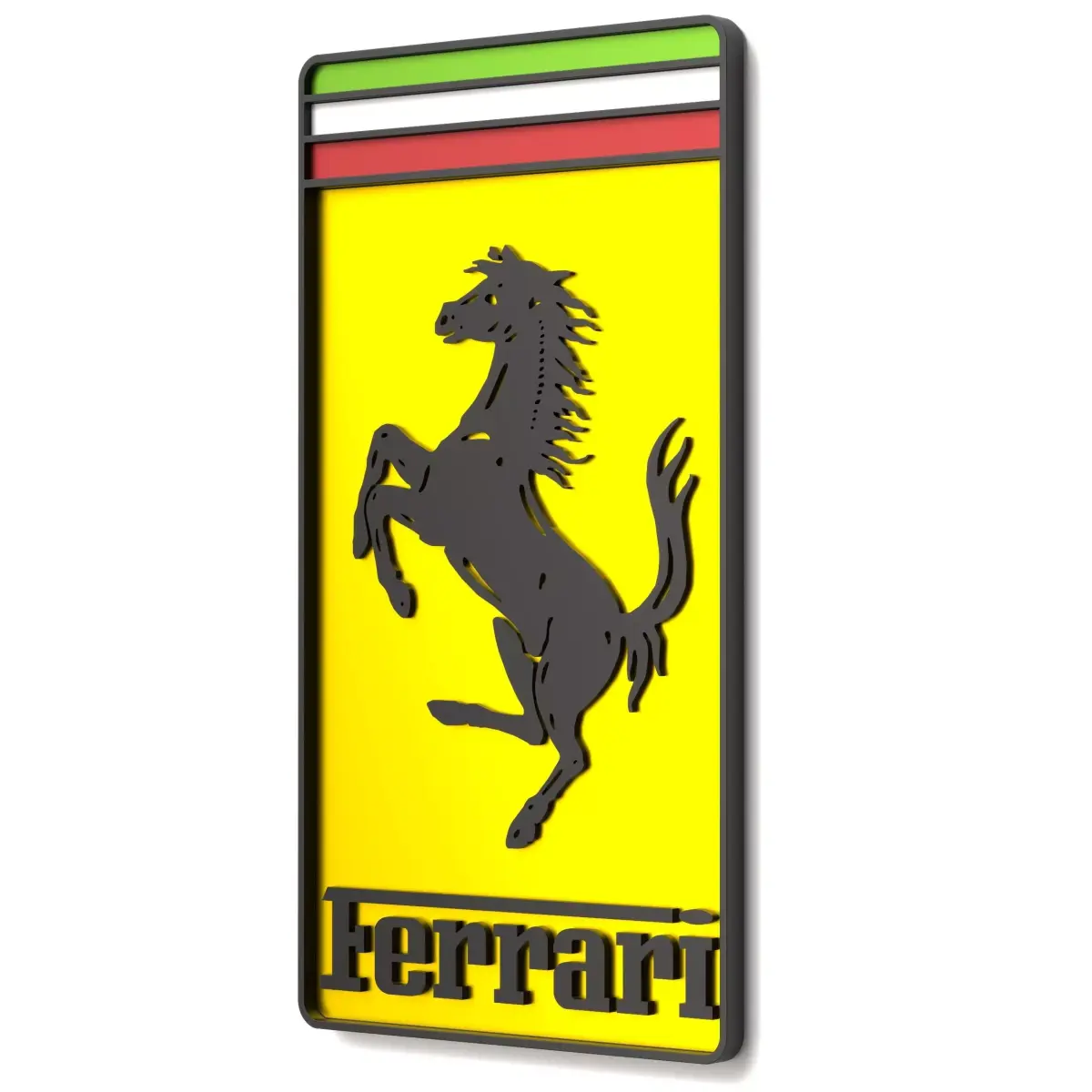 Highly detailed Ferrari logo 3D print model designed for multi-color printing systems (AMS/MMU).The set includes separate files for each color/element, a standalone frame, and an all-in-one merged version.The model features very high detail, including the frame and the “S” and “T” lettering, with clean geometry for sharp color separation.What’s included