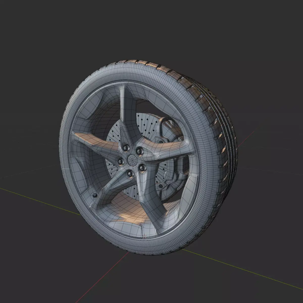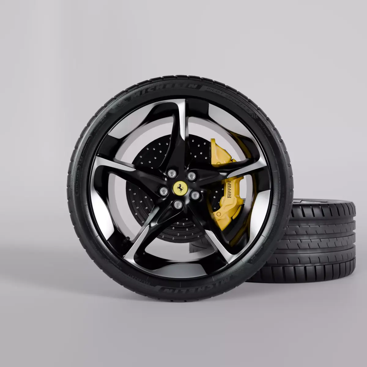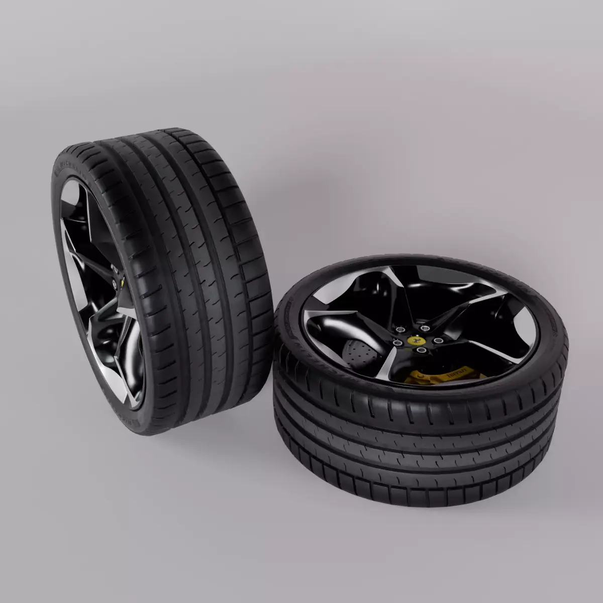 Ferrarri Puro Sangue WheelBundle : Tire+Brake+Disk+RimHigh poly parts of Ferrari Purosangue wheel, ready to use.All materials native in blender file, ready to render in Cycles.