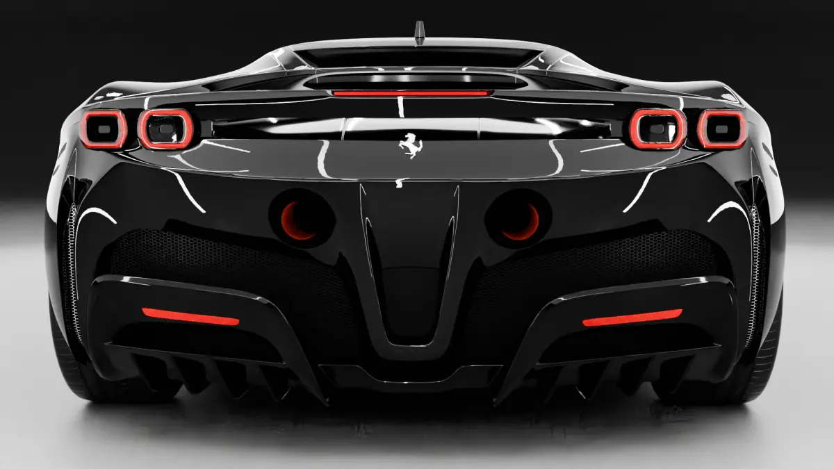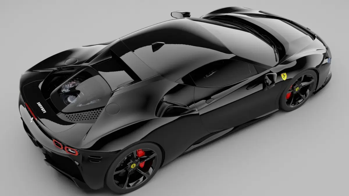 These tags highlight the model's association with Ferrari's SF90 Stradale, emphasizing its mid-engine design, plug-in hybrid electric vehicle (PHEV) technology, and classification as a high-performance Italian supercar. The tags also reference various model years (2020-2022) and aspects like its exotic appeal, detailed interior, and Italian heritage.