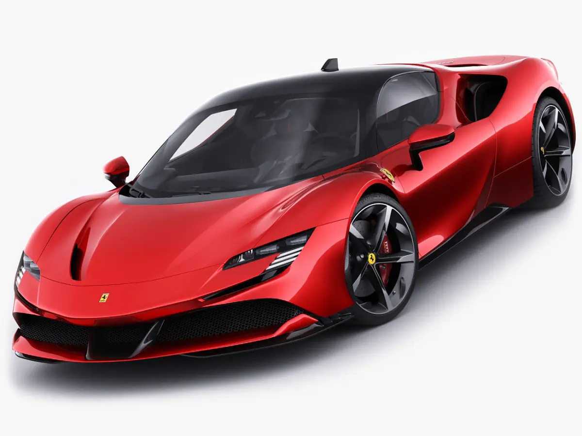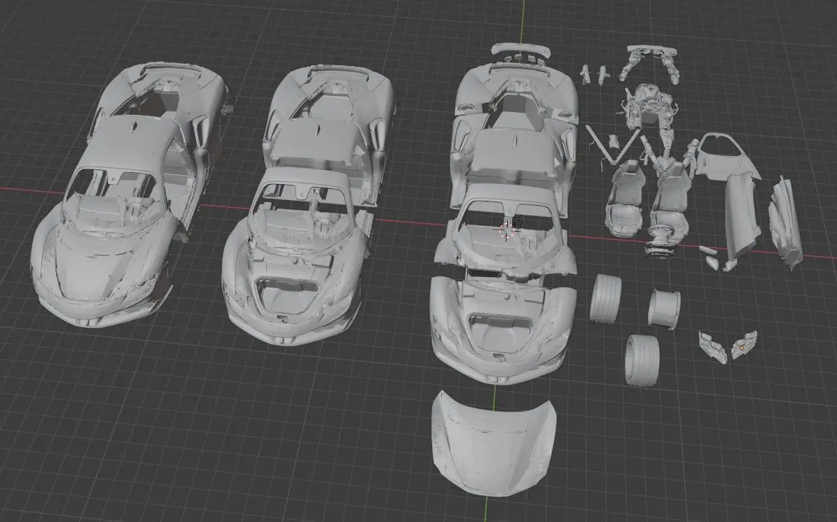 The model includes:Body, front and rear wheels, doors, lights, seats, mirrors, engine, etc.