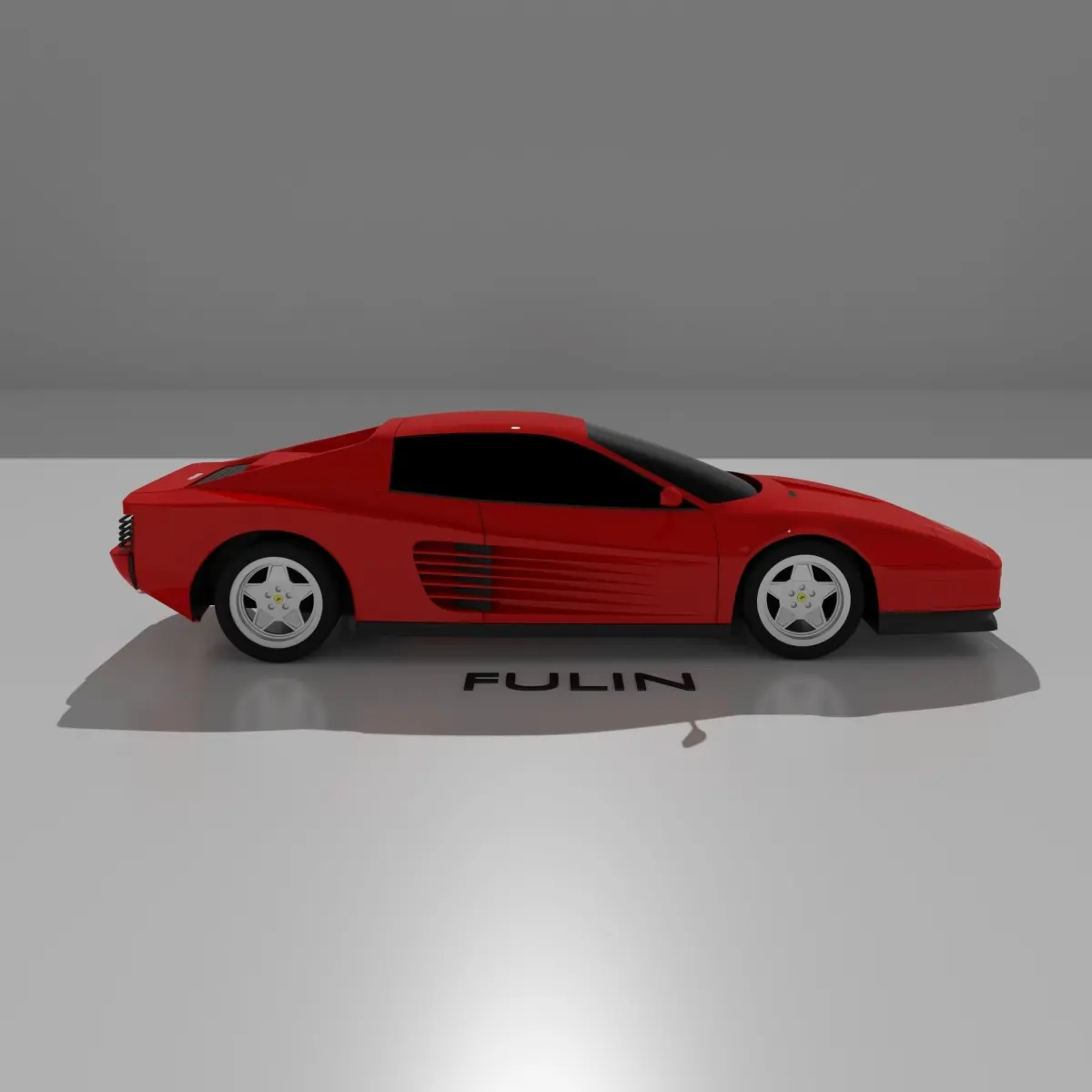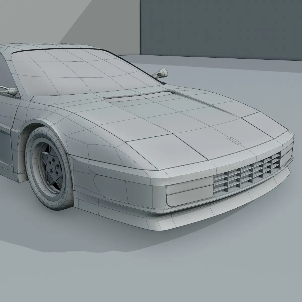 Car is modeled on blender. All the parts are seperated, only the body is one piece. Model does not has interior modeling but the whole car modeled with its blueprint. There is no guarantee that it would work perfectly on other programs. Model has one PBR Texture and two pictures of Ferrari logo.