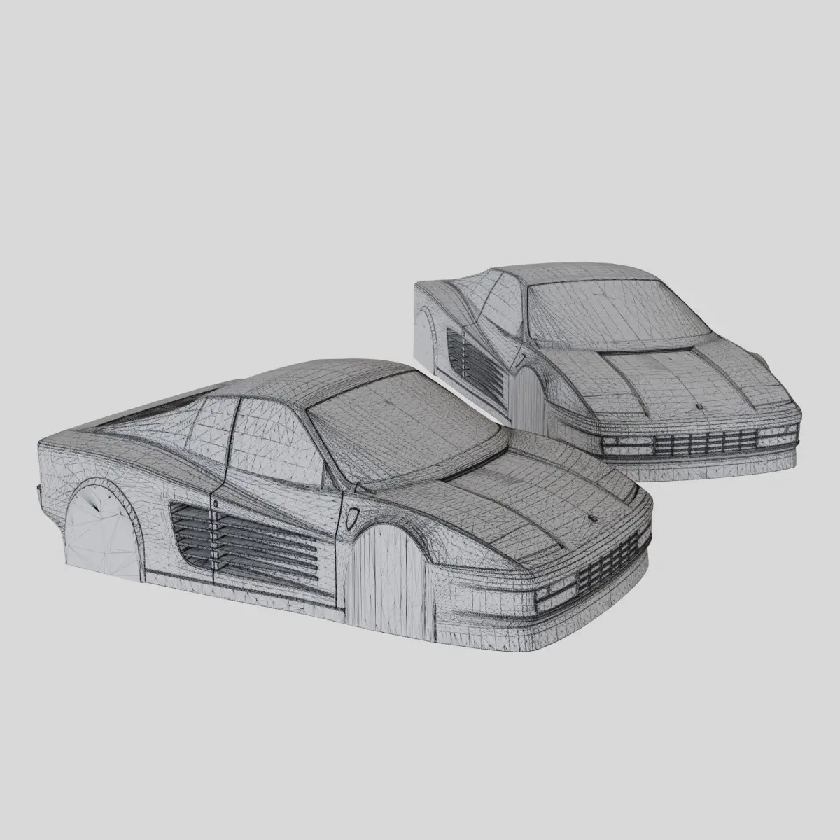 - 3D model of a Ferrari Testarossa in realistic and toy versions (toy version is squashed in length)