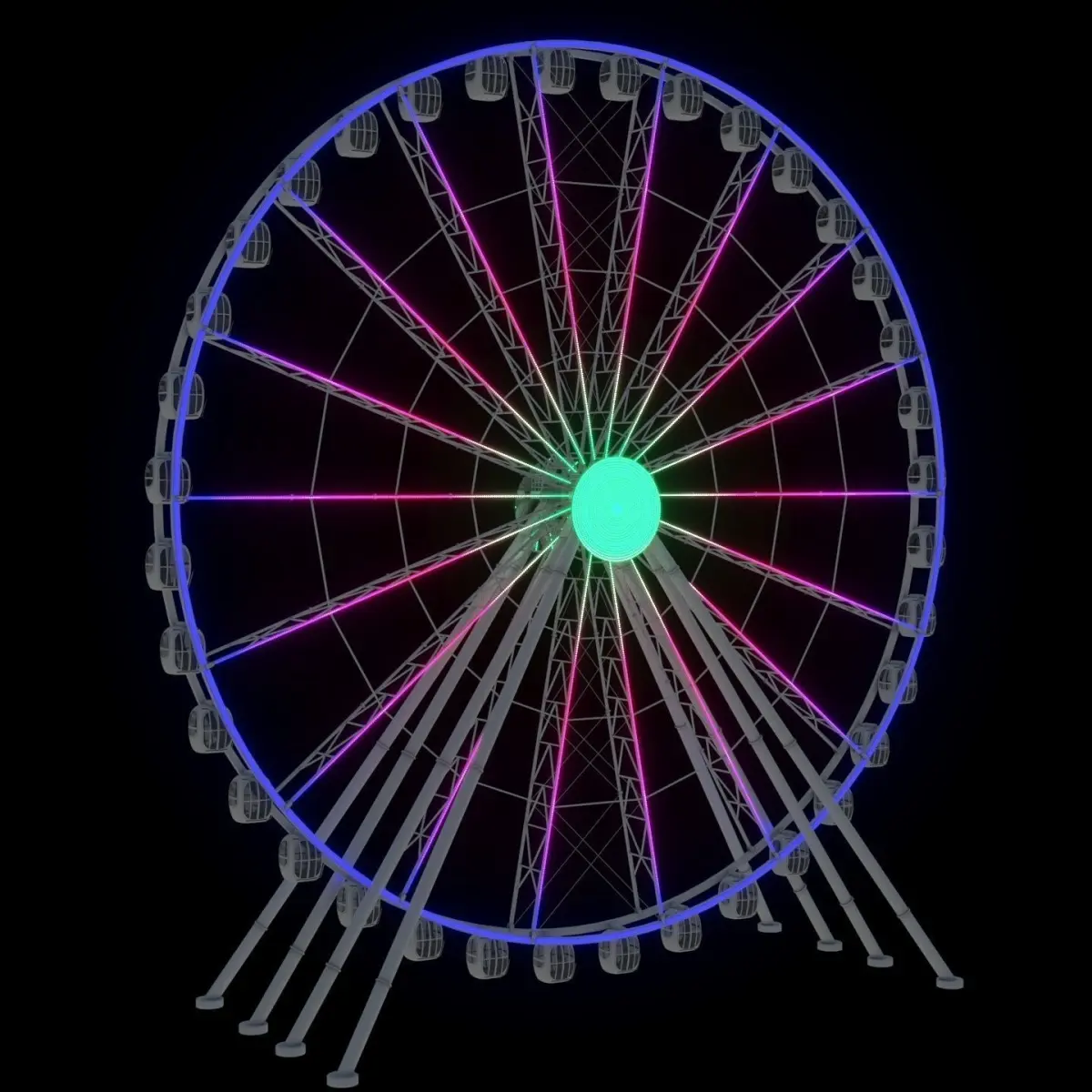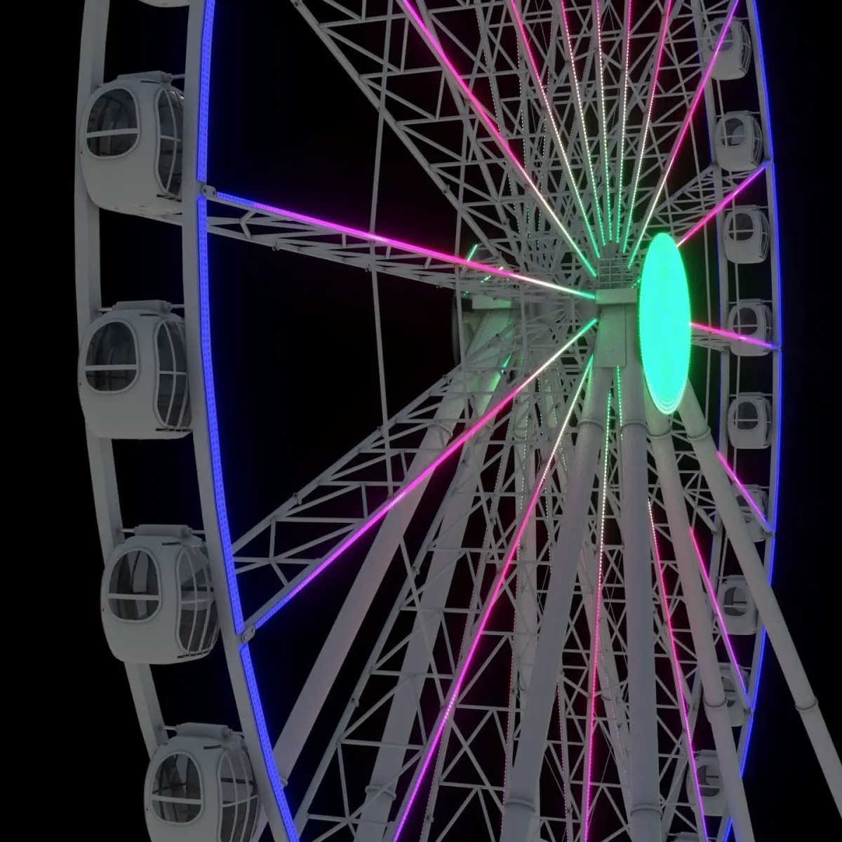 Ferris wheel 55 meters high and 36 booths. Closed cabins with automatic doors and air conditioning.