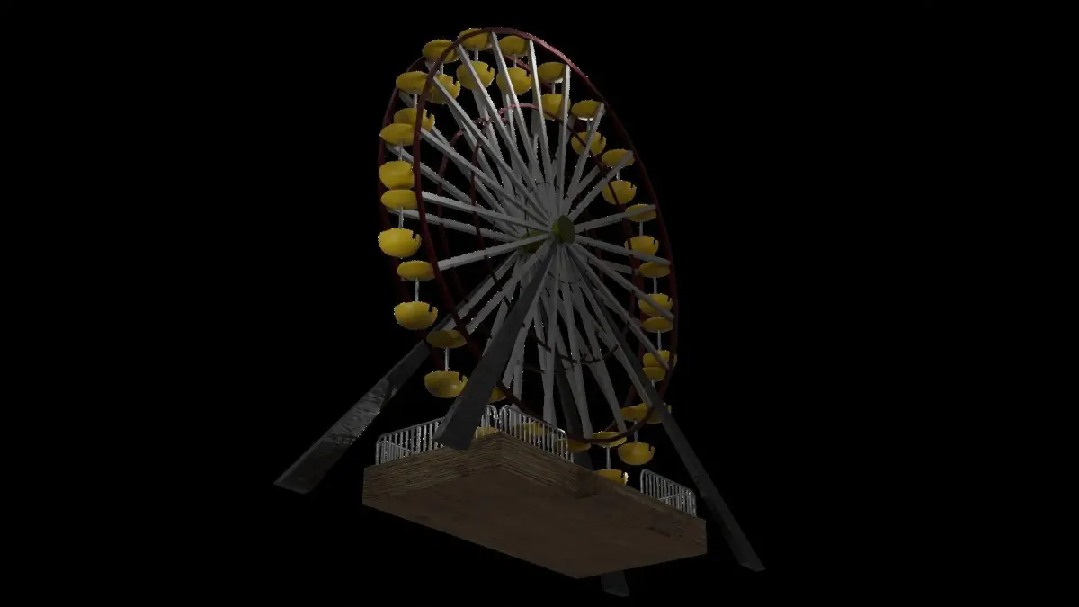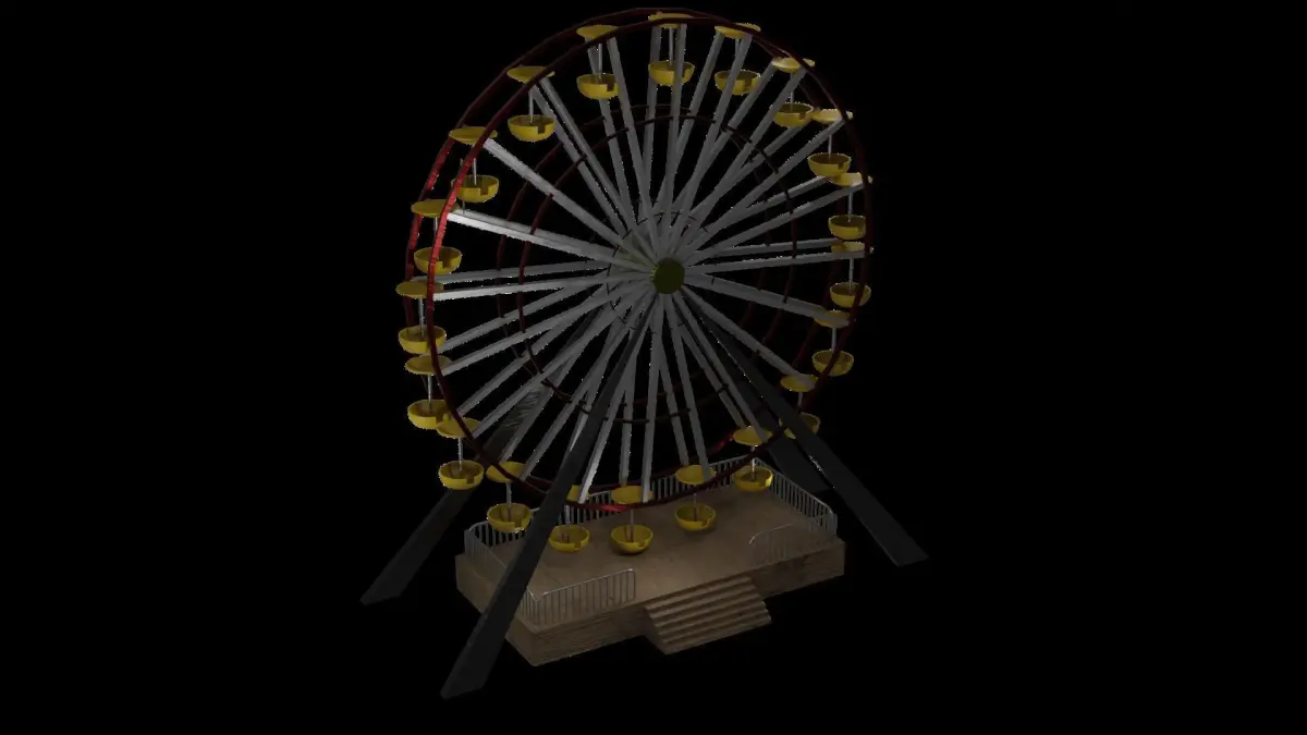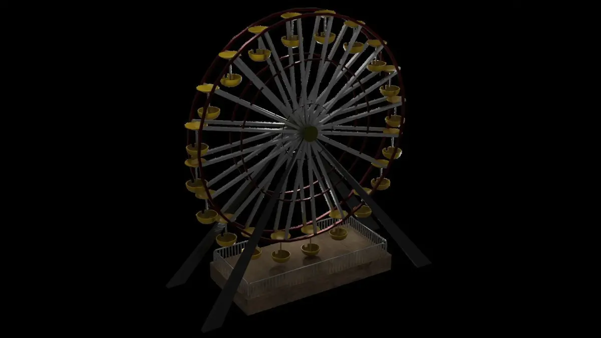 I made the cabins from plastic, the platform from wood, the cabin pillars and platform railings from aluminum, and finally the other parts holding the Ferris wheel from steel.
