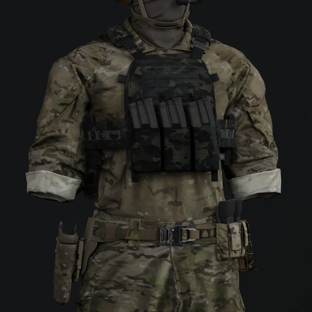 Product includes a Ferro Concepts KTAR Front Flap with Multicam & Multicam Black Textures.Mags from: https://www.cgtrader.com/free-3d-models/military/gun/lancer-l5awm-30-round-m4-magazine