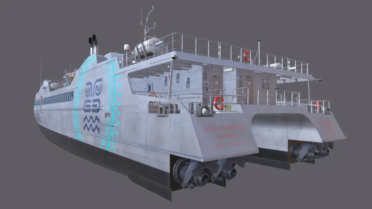 Highly detailed 3D model of the Apetahi Express, a modern high-speed catamaran ferry operating in French Polynesia. The model accurately represents the vessel’s twin-hull structure, streamlined superstructure, sun deck, and passenger areas. Ideal for maritime visualization, simulation, animation, or promotional use. Includes clean topology and optimized geometry for efficient rendering.