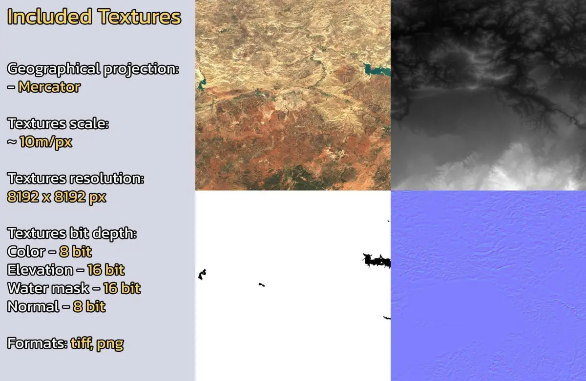 - Textures resolution: ~10m/px