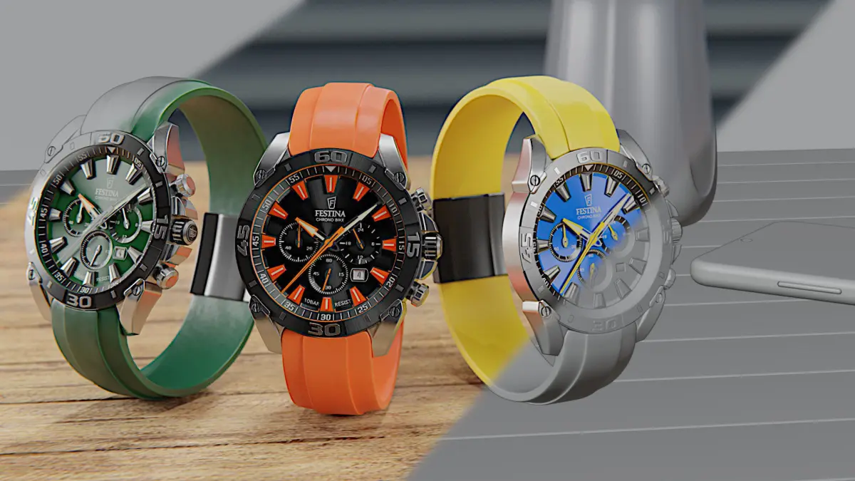 Get this 3D watch Festina Chrono bike in 3 colors. All materials are set up in blender.