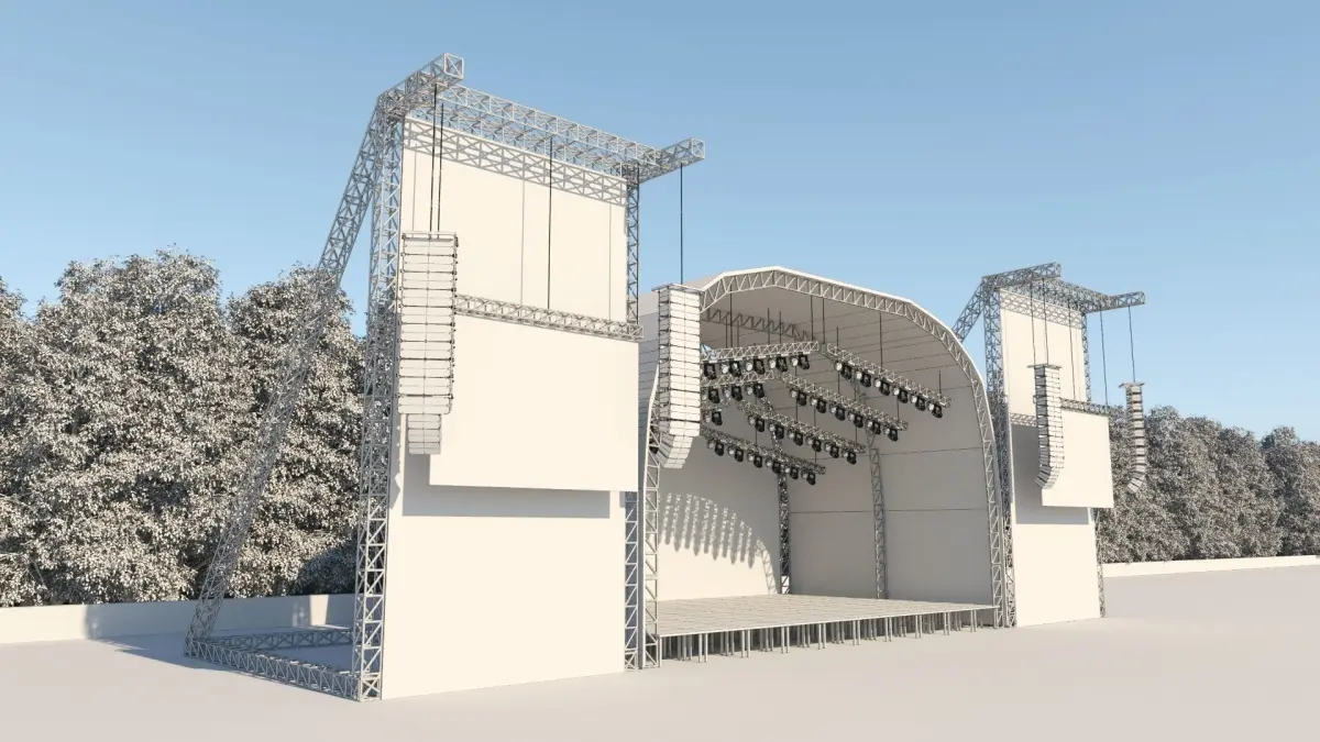 Full concert stage. Stage Design Pack and Stage Design Module. Tree not included. Trees placed with patch. Full concert and festival setup is in this file. You can interfere with the contents of all other objects along with the file.