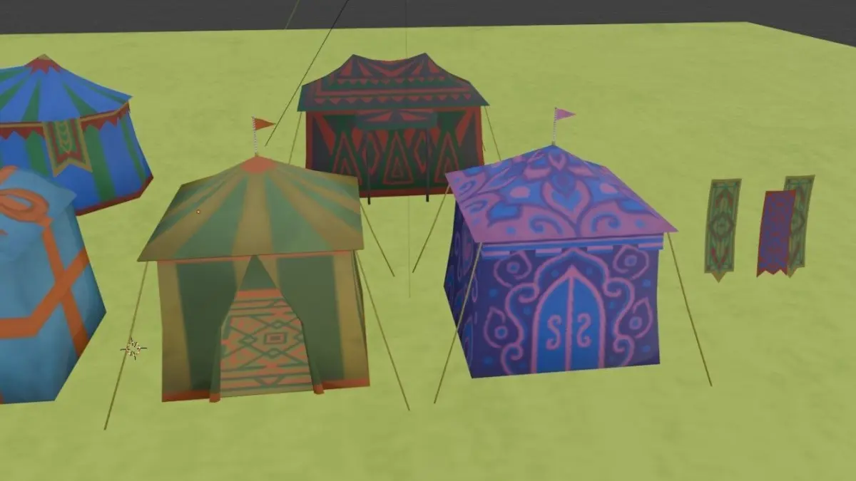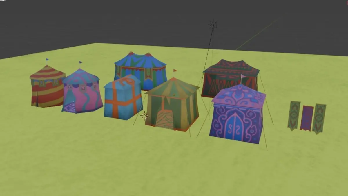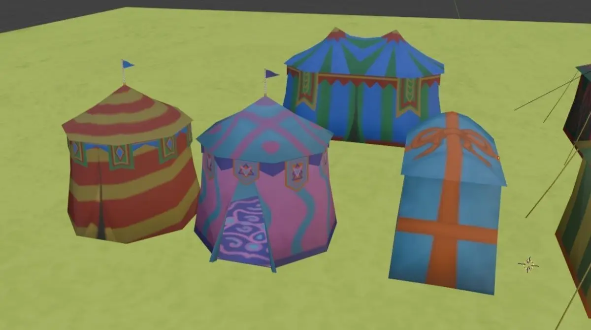 Festival tent for scene decoration There are 7 types of games or cartoons, plus festival decoration cloth and grass surface textures.