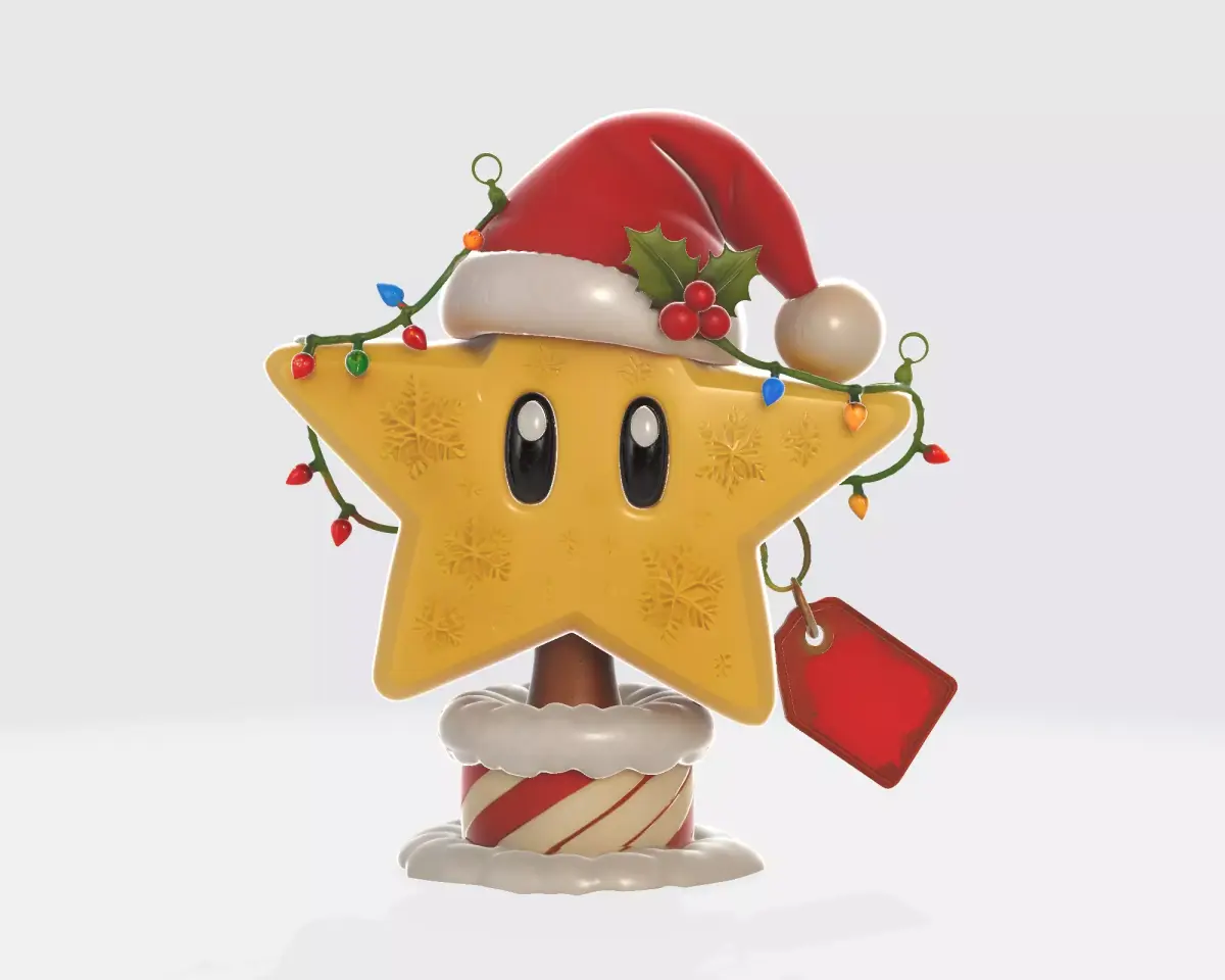 christmas star, mario star, 3d print ornament, christmas decoration, gamer gift, christmas decor, santa hat star, holiday ornament, cute christmas decor, mario inspired, christmas tree topper, festive home decor, geeky christmas, gaming ornament, christmas collectible, 3d printed gift