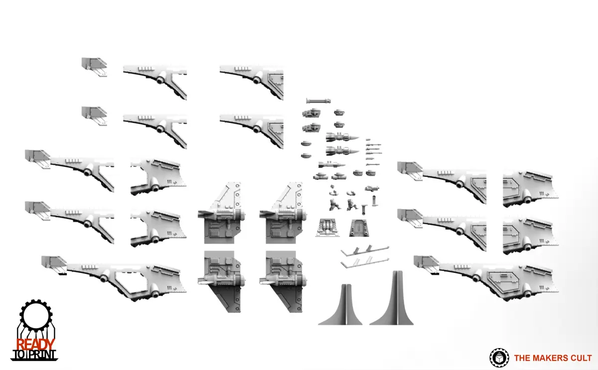 multipart large aircraft with many weapon options, ready for printing, split up and presupported for your ease.