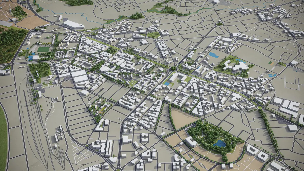 - Full city extents up to 100 x 100 km — or crop to an area of interest for better format compability and scene performance