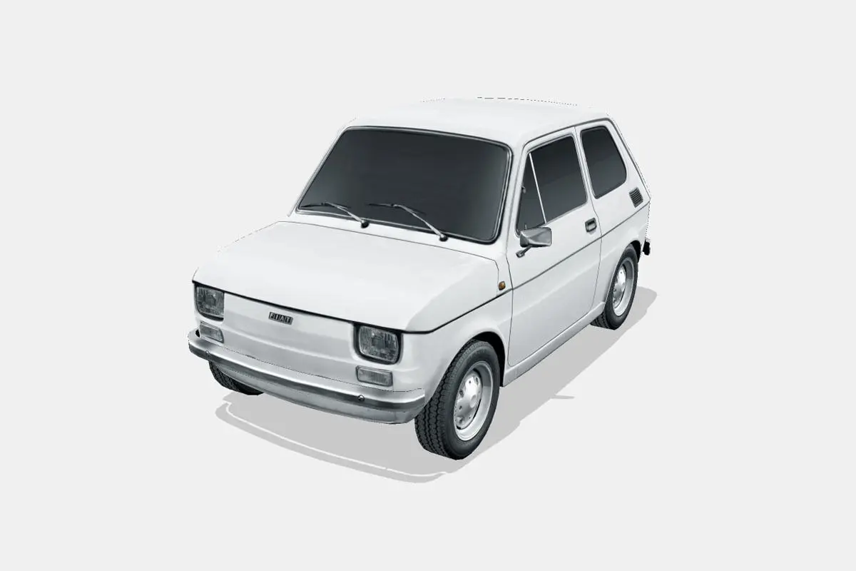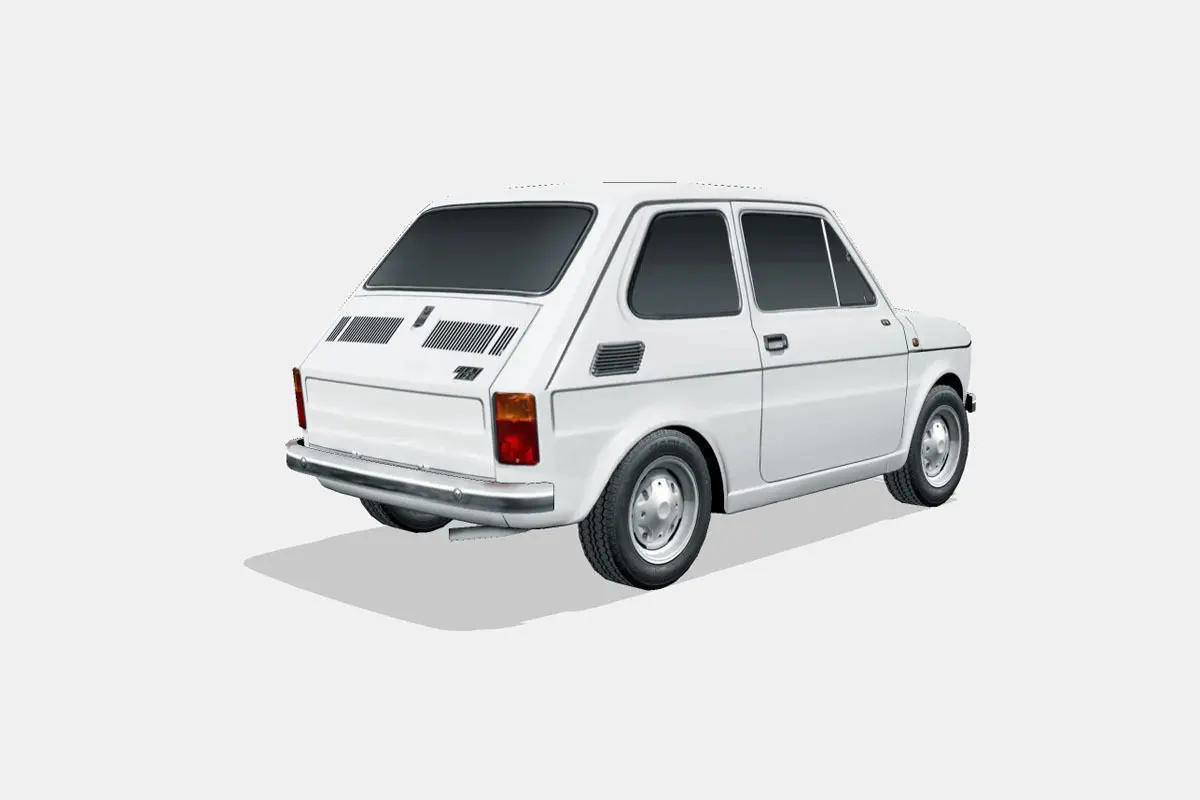 3d model of the 1972 Fiat 126, a city car 2-door saloon, also called Zastava 126 (Yugoslavia), Steyr Puch Fiat 126 (Austria), Fiat 126 Maluch (Poland), FSM Niki (Australia)